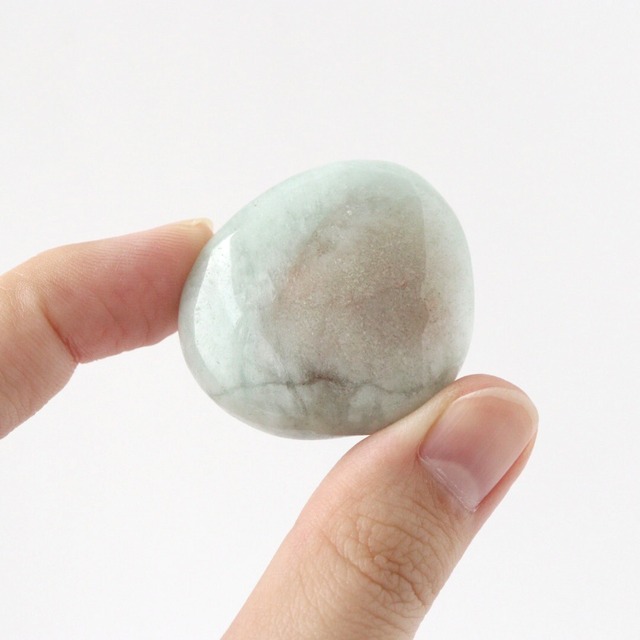 グレイッシュなスカイブルーが静かに広がる、穏やかな印象のアクアマリンのタンブル。 透明感の中にわずかな霞が差し込み、ゆっくりと移ろう空模様のよう。 アクアマリンは和名で「藍玉(らんぎょく)」と呼ばれる、青色のベリルの一種。 その名はラテン語の “aqua(海)” と “mare(水)” に由来し、古代より航海の守護石としても大切にされてきました。 同じベリルの仲間には、エメラルド(翠玉)やモルガナイト(ピンクベリル)などがあり、それぞれが自然の色彩の豊かさを象徴しています。 また、アクアマリンは穏やかな波のように心を静め、冷静さと優しさをもたらす石といわれています。 こちらは、グレイッシュなスカイブルーのアクアマリン。大きめのタンブルです。 透明感のあるグレーの層には奥行きがあり、表面にはラメのような内包物が見る角度によって光が優しく流れます。 ほんのりと赤みを帯びた部分は、その色彩はまるで夕暮れの空が移り変わっていくよう。 自然のままの表情がそのまま磨かれた、大きなアクアマリンの結晶です。 静けさと奥行きをあわせ持つ、美しい空色のアクアマリン。 日々の中に、穏やかな時間をもたらしてくれそうです。 サイズ:3.6×3.3×2.0cm 重さ:32.1g