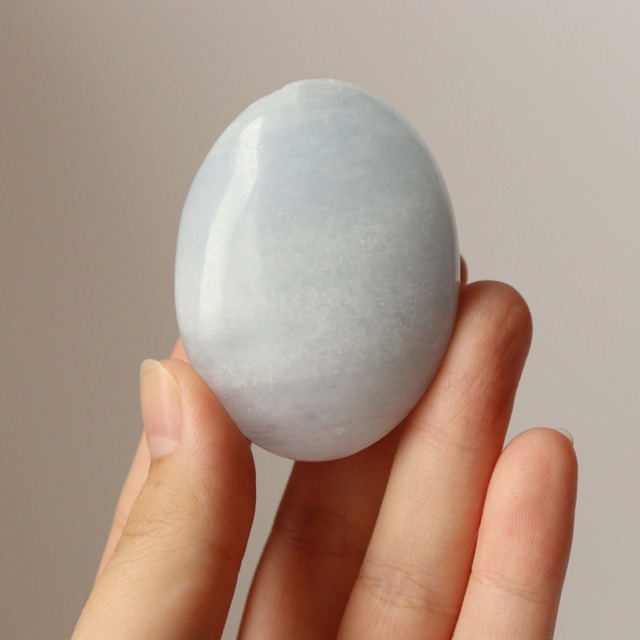 ふんわりとひろがる雲を閉じ込めたような、淡いブルーのブルーカルサイトの握り石。 カルサイトは、和名を「方解石」といい 非常にカラーバリエーションに富んだ石。 中でも青色に発色するものをブルーカルサイトと呼びます。 こちらは、ホワイトとブルーの調和が取れたブルーカルサイト。 晴れた日に広がる大空のようなカラーリングです。 流れるような優しい模様や丸く磨かれたフォルムも可愛らしく、持つことで心を穏やかにしてくれるピースです。 ※楕円の端部分に小さなかけがございますので予めご了承ください。 サイズ:5.2×3.9×2.0cm 重さ:63.3g
