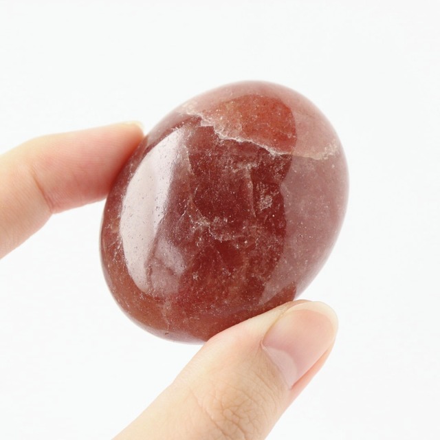 苺ジャムのような落ち着いたピンクカラーの、アフリカンストロベリークォーツの握り石。 透明感のある不思議なレッドピンクの結晶と、内包されたラメのようなきらめきが可愛らしいピースです。 ストロベリークォーツは水晶の一種で、いちごのようなカラーリングが可愛らしい天然石。 こちらは通常のストロベリークォーツよりもグレイッシュで落ち着きのあるカラーリングの アフリカンストロベリークォーツ。 ストロベリークォーツとは内包している鉱物が異なり、苺ジャムのようなカラーが特徴です。 きらきらとした鱗のようなきらめきも内包した、可愛らしい握り石をお楽しみください。 サイズ:5.1×4.0×2.4cm 重さ:71.1g