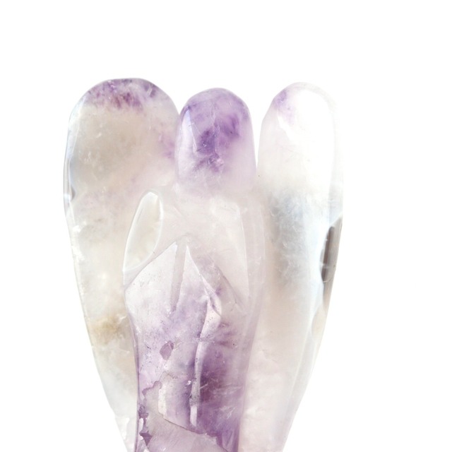 柔らかな紫色のアメジストとアゲートの模様が美しく共生した、アメジストアゲートの天使。 淡く優しい発色と独特の模様が、心を穏やかに包み込みます。 アメジストはクォーツの一種で、パープルの発色が美しい天然石。 精神の浄化や安らぎをもたらす石として知られています。 アゲートは、微細な石英の粒が集まって形成されたストーンで、その美しい模様から神秘性を見出され古くから護符やお守りとして使われてきました。 こちらは、柔らかな紫色のアメジストとアゲートの模様が繊細に混ざり合ったアメジストアゲートの天使。 手を合わせる姿や微妙な表情まで丁寧に磨かれ、石の光沢と透明感が静かに輝きます。 前面の一部に凹みがありますが、美しいパープルの発色やアゲートらしい不思議な模様が見事な一つです。 天使のモチーフは守護や導きを表し、そっと寄り添い見守ってくれる存在です。 サイズ:10.6×6.0×2.8cm 重さ:199.0g