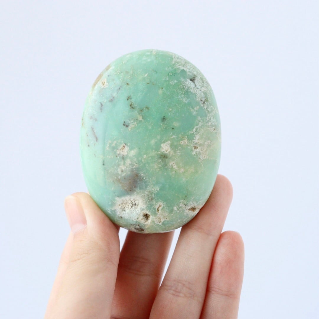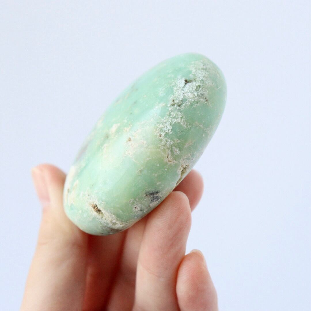 春そのもののような柔らかいグリーンカラーが美しい、クリソプレーズの握り石。