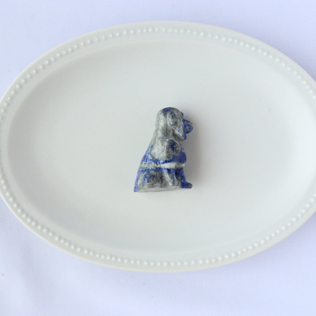 まるで夜空をぎゅっと閉じ込めたような、深くやさしいラピスラズリの犬。