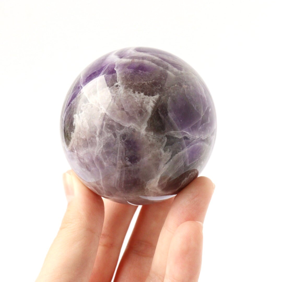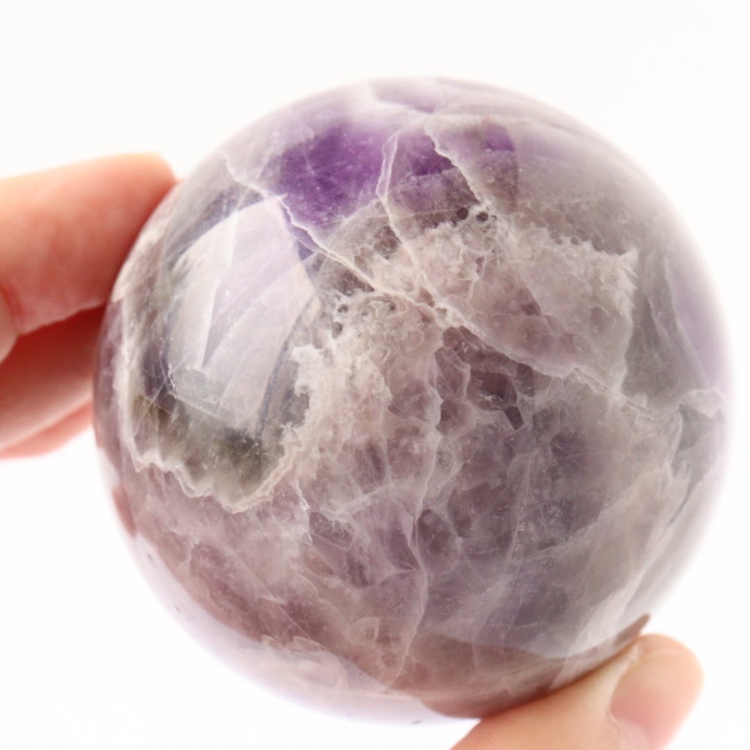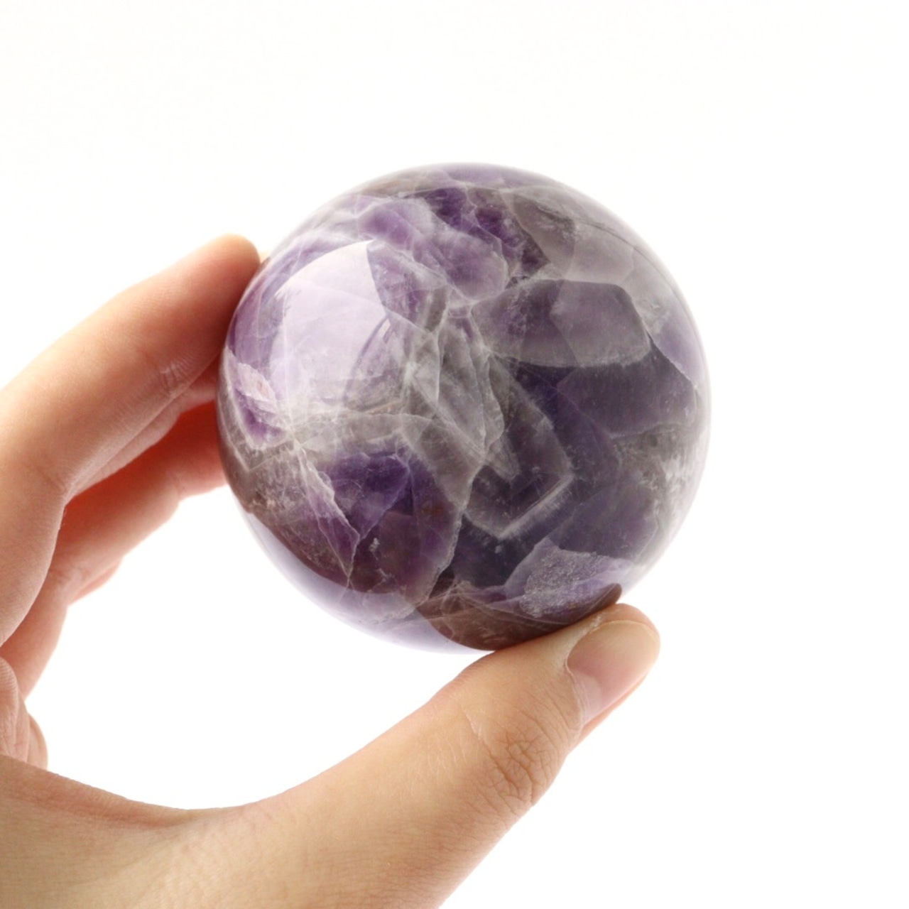 パープルとグレーの幾何学模様が神秘的な、アメジストのスフィア。