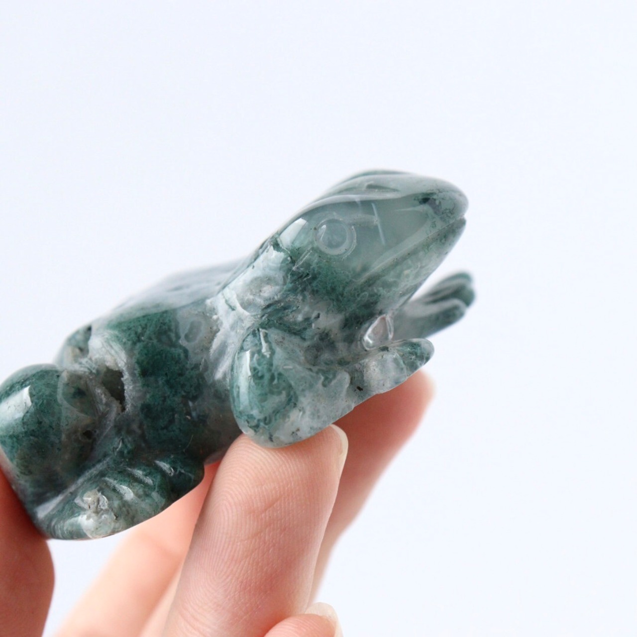 不思議な存在感を放つ、モスアゲートのカエルをご堪能ください。
