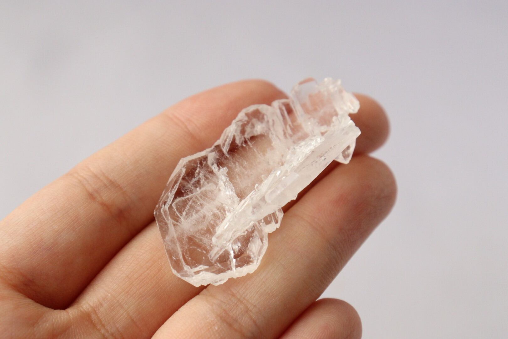 母岩から縦に成長する通常のクォーツとは異なり、横に平たく成長した結晶同士が手を繋ぐように連結した状態で結晶しています。