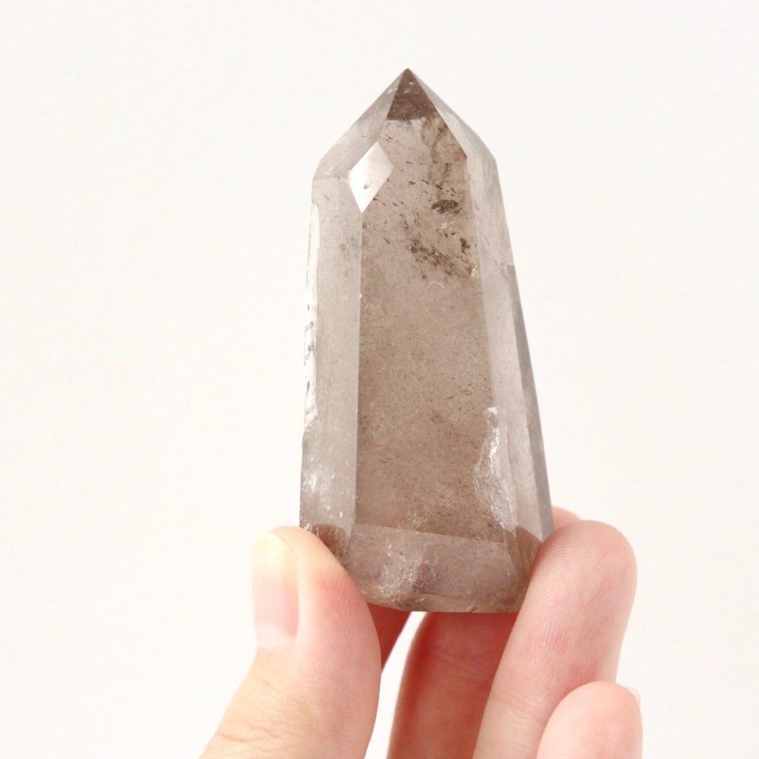深みのあるブラウンの色合いが印象的な、スモーキークォーツのタワー。