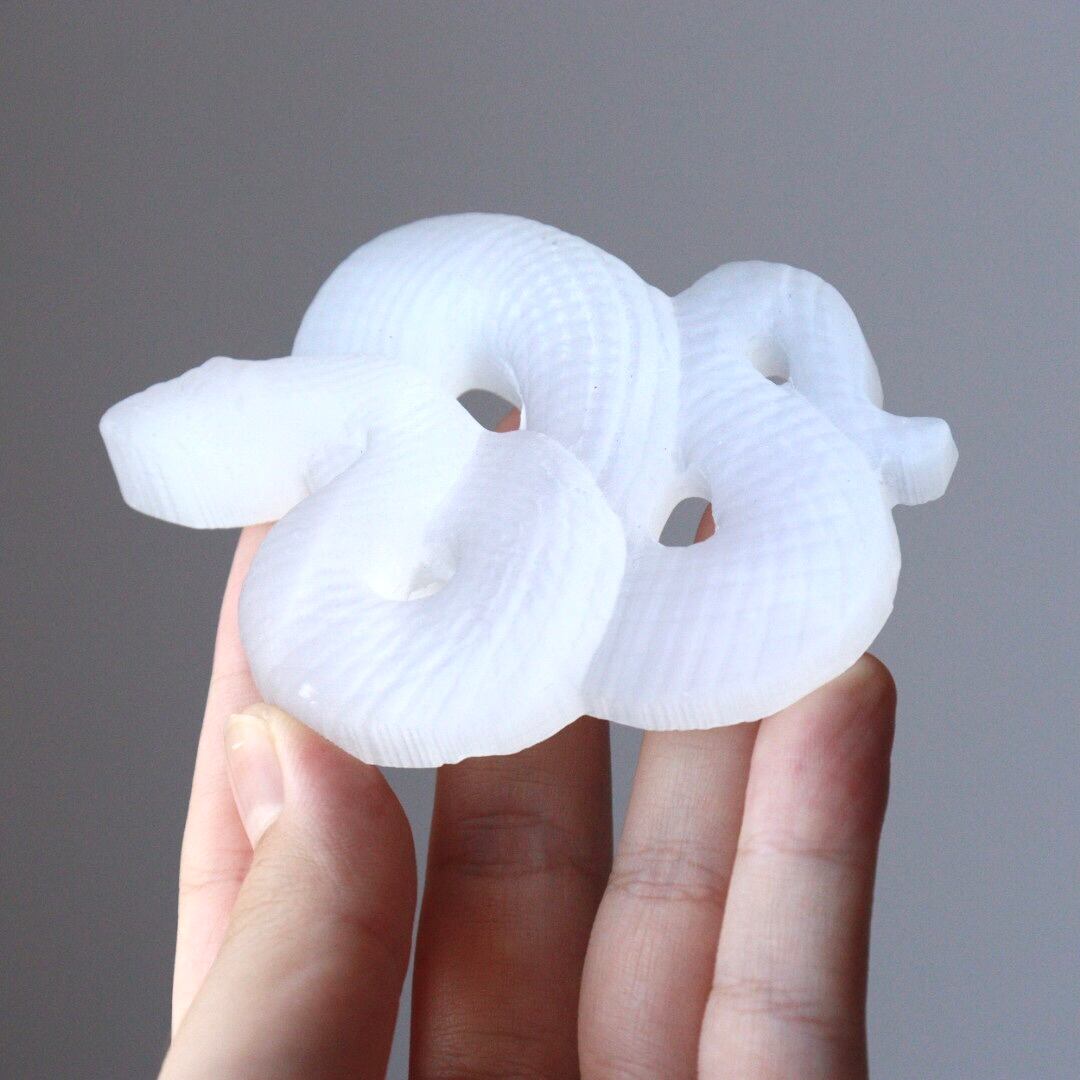 雲の上にいるかのようなホワイトカラーとキャッツアイ効果が美しい、セレナイトの白蛇。