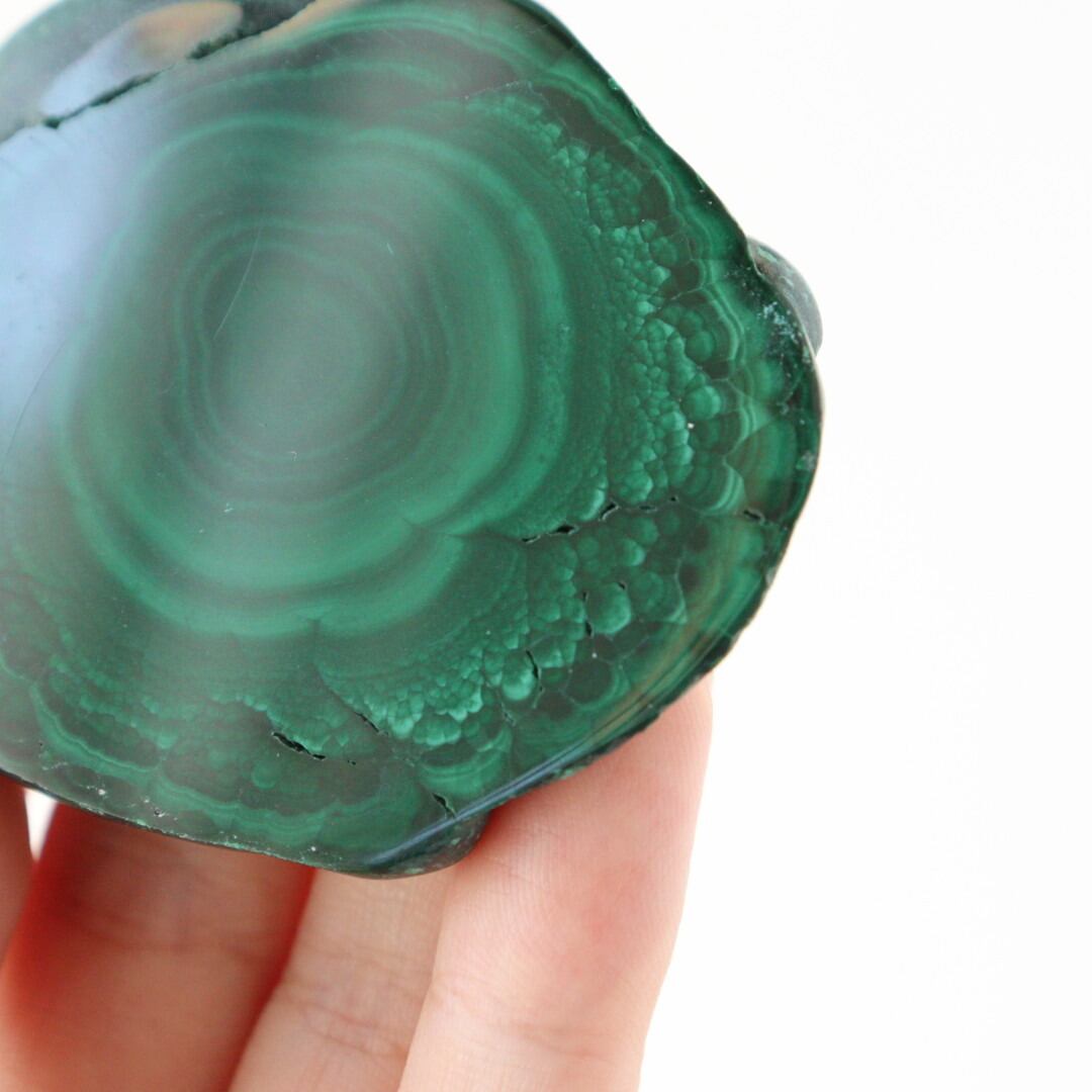 深いグリーンと神秘的な模様が、どこか守られているような安心感を与えてくれるマラカイトです。