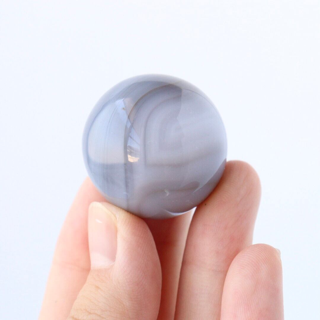 静かな深みをたたえたグレーの色合いが印象的な、グレーアゲートのスフィア。