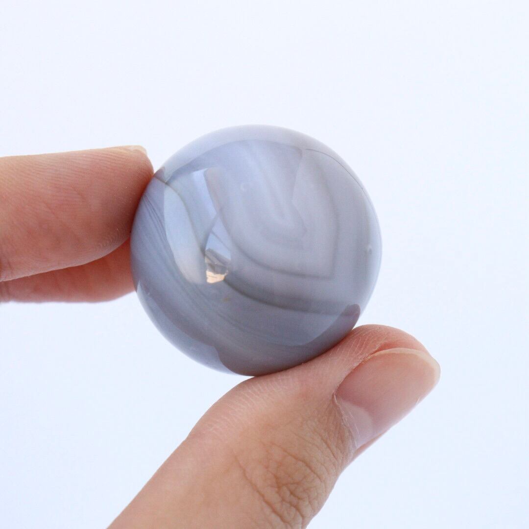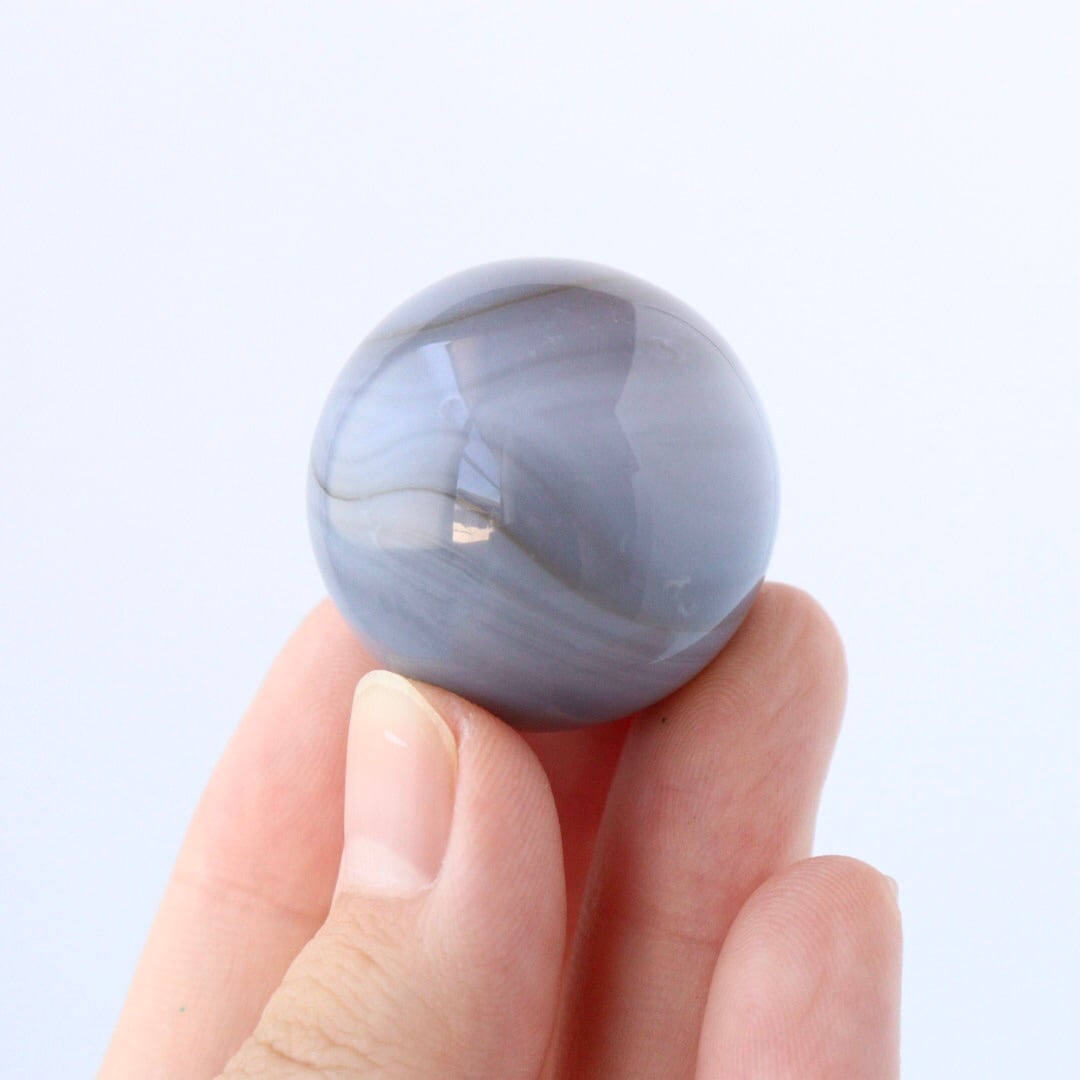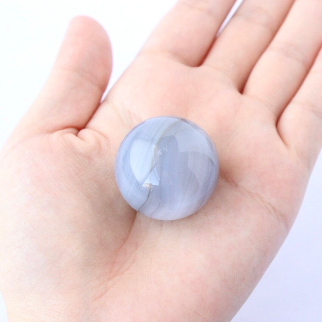 こちらのスフィアは、カルセドニーに近い繊細な質感を持ちながら、ほんのりと浮かぶダークグレーとホワイトの縞模様が特徴のスフィア。