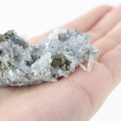 半透明の水晶と金属光沢を放つパイライトの美しいコラボレーションです。