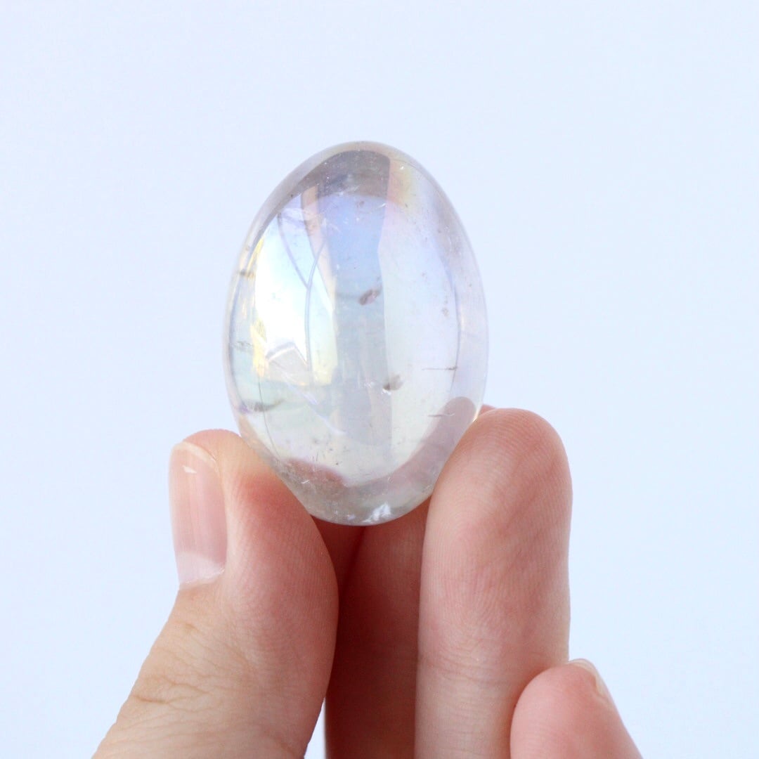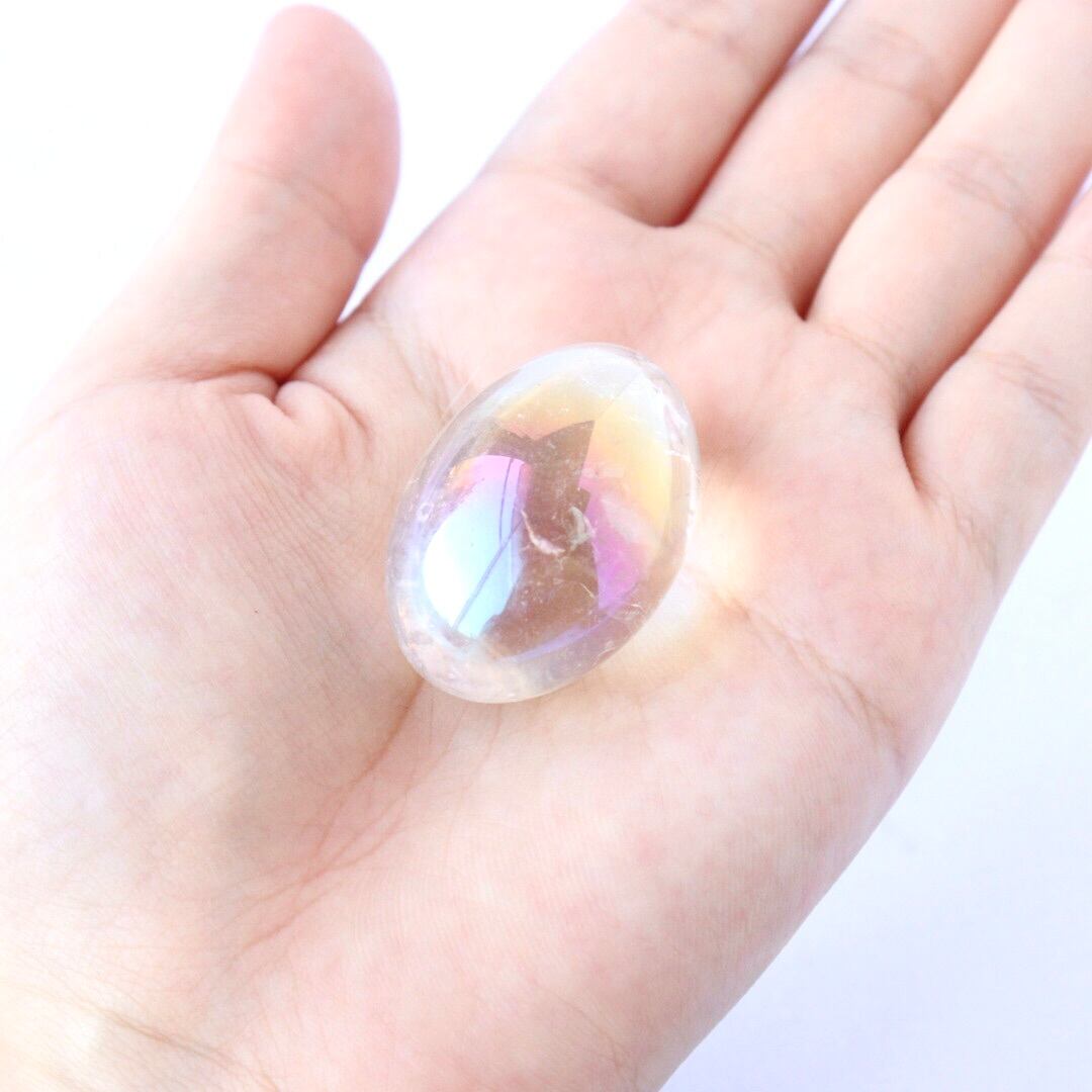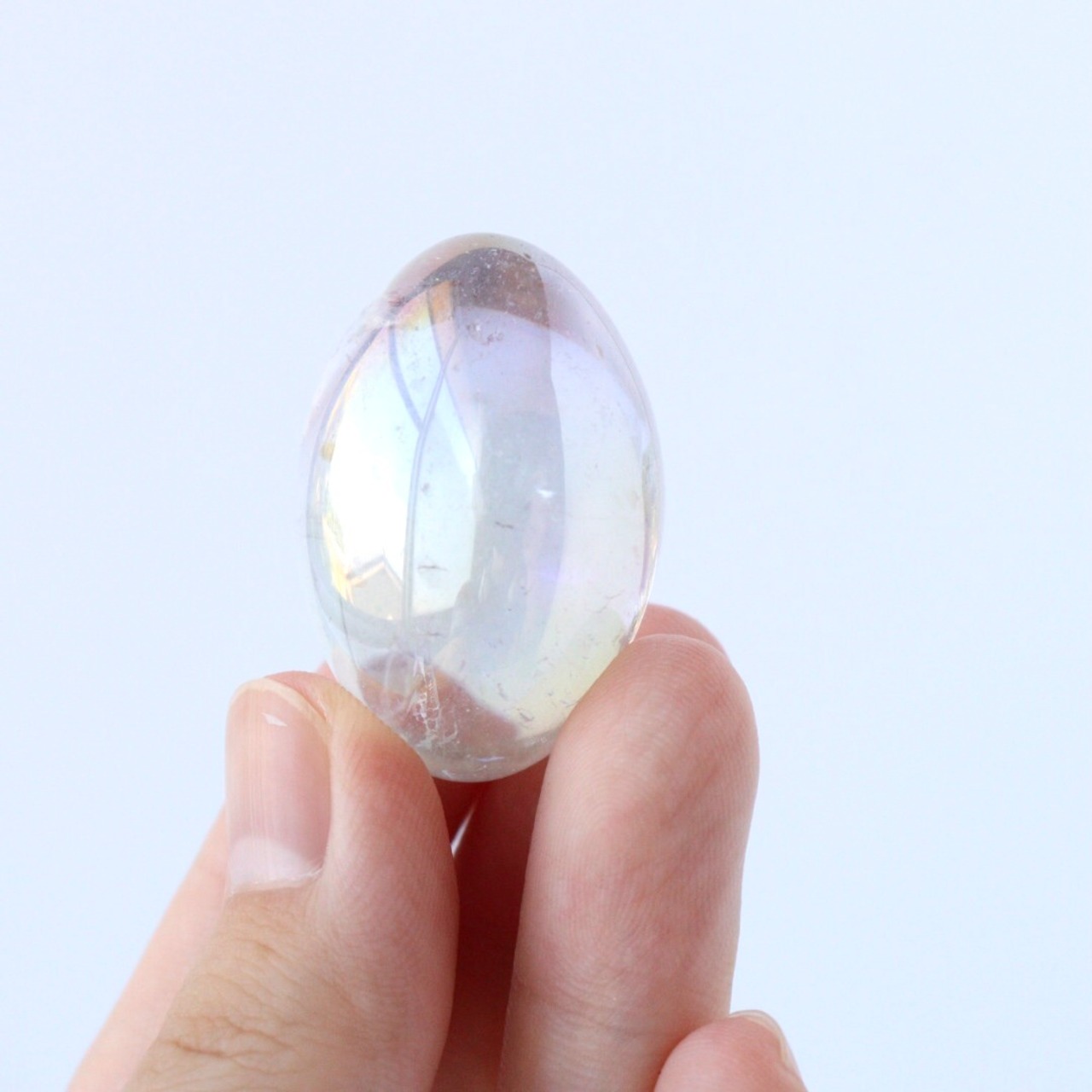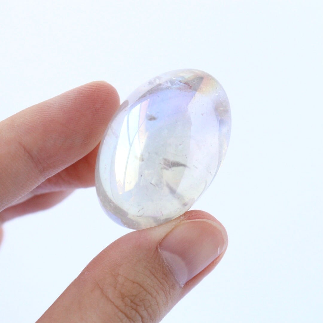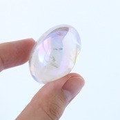 抜群の透明感とファンタジックなオーラが可愛らしい、エンジェルオーラクォーツのタンブル。