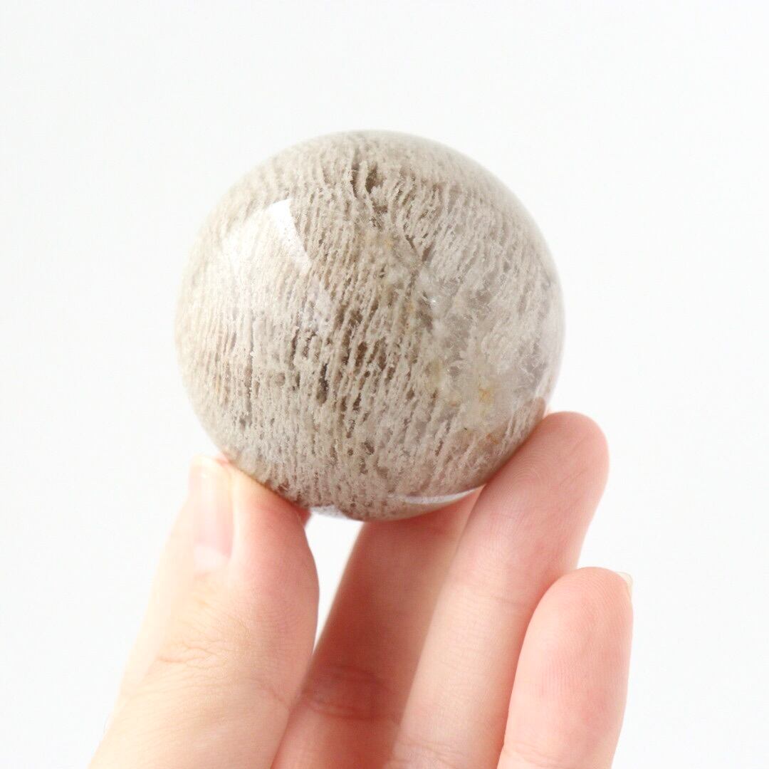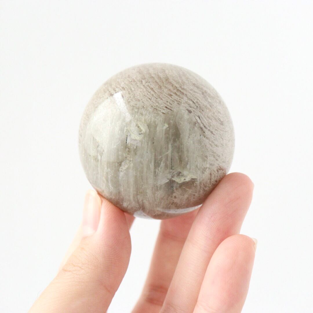 透明なクォーツの中にナチュラルホワイトの層が幾重にも重なる、ホワイトガーデンクォーツのスフィア。