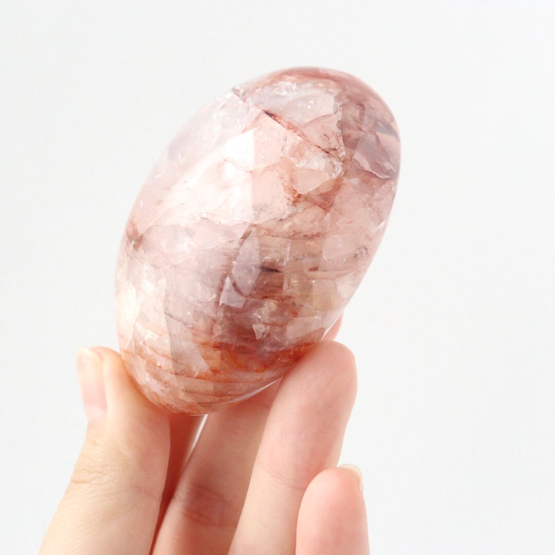 こちらは、美しいクォーツにレッドヘマタイトが入り込んだ、大きな大きな握り石。