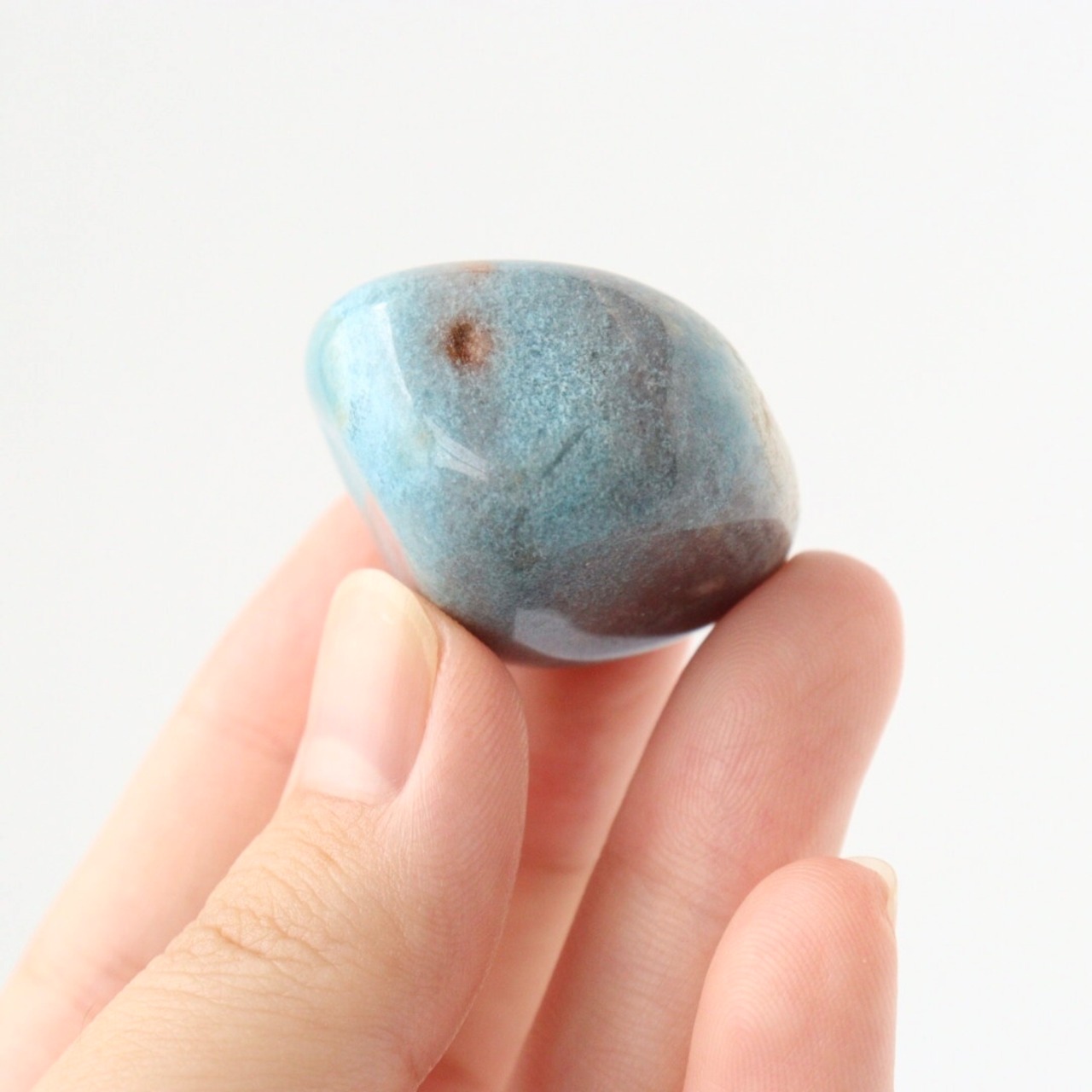 こちらは、スカイブルーをメインにグレーの模様が入り込んだトロレアイトのタンブル。