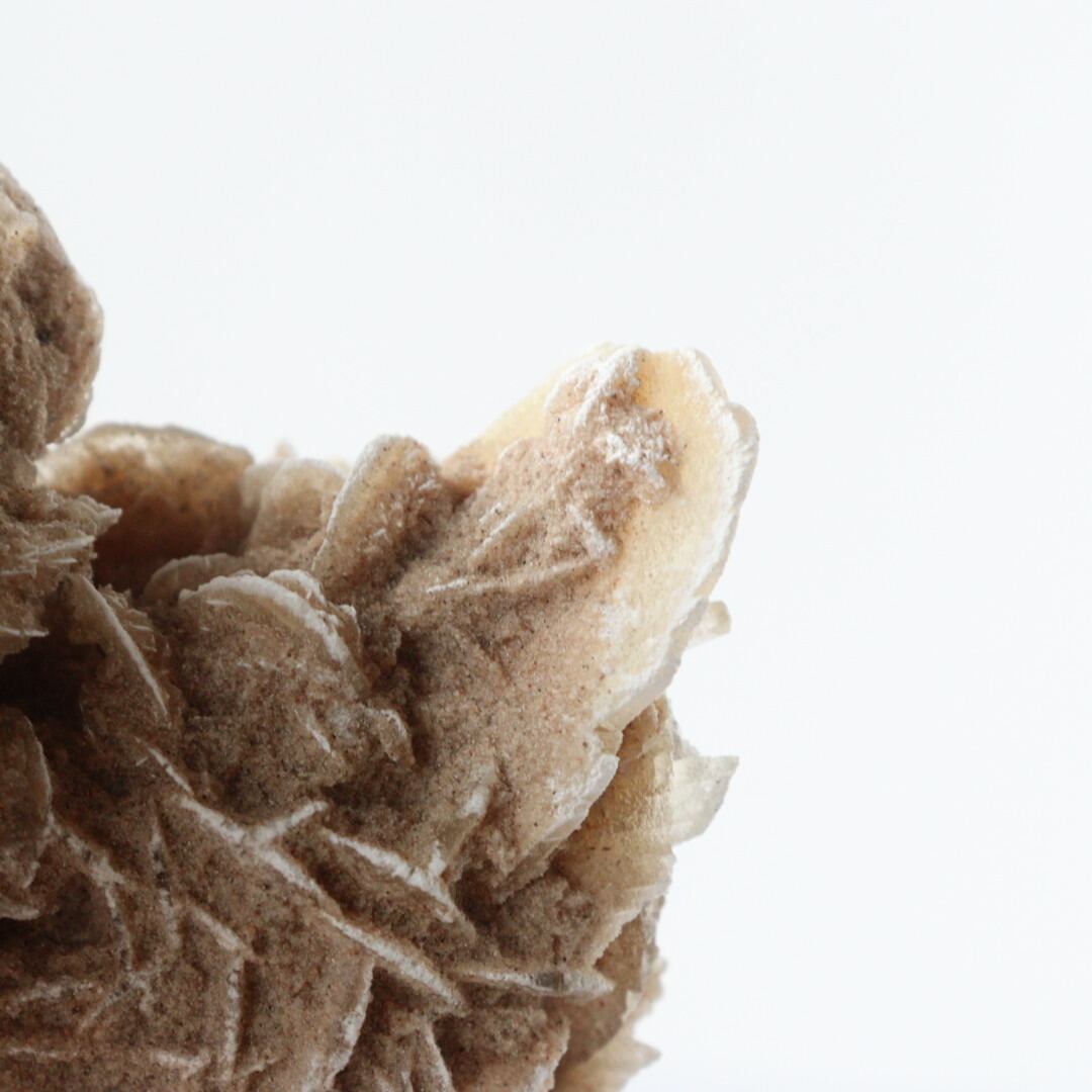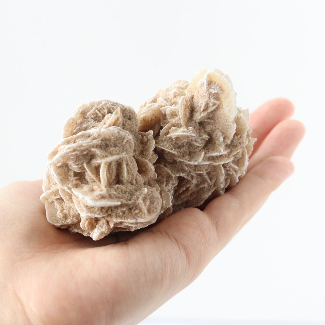 デザートローズは世界各地の砂漠で見られる鉱物で、バラの花のような形をしていることから「砂漠の薔薇」とも呼ばれます。砂漠の地中のミネラル分が結晶化して形成されると考えられていますが、なぜこのように花のような形になるのかはまだ完全には解明されていません。