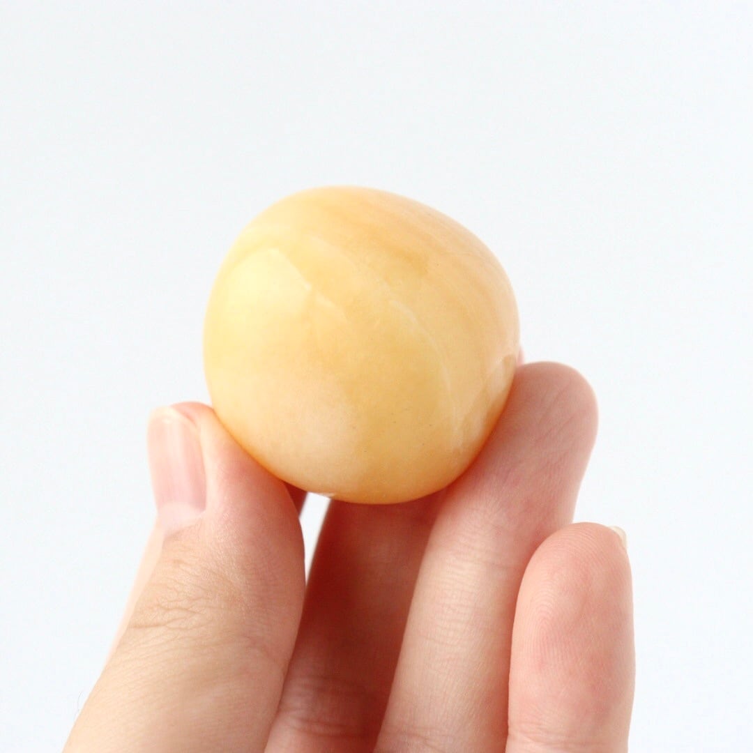 つるりと磨かれた手ざわりや、明るい発色の結晶が心を温めてくれるオレンジカルサイトです。