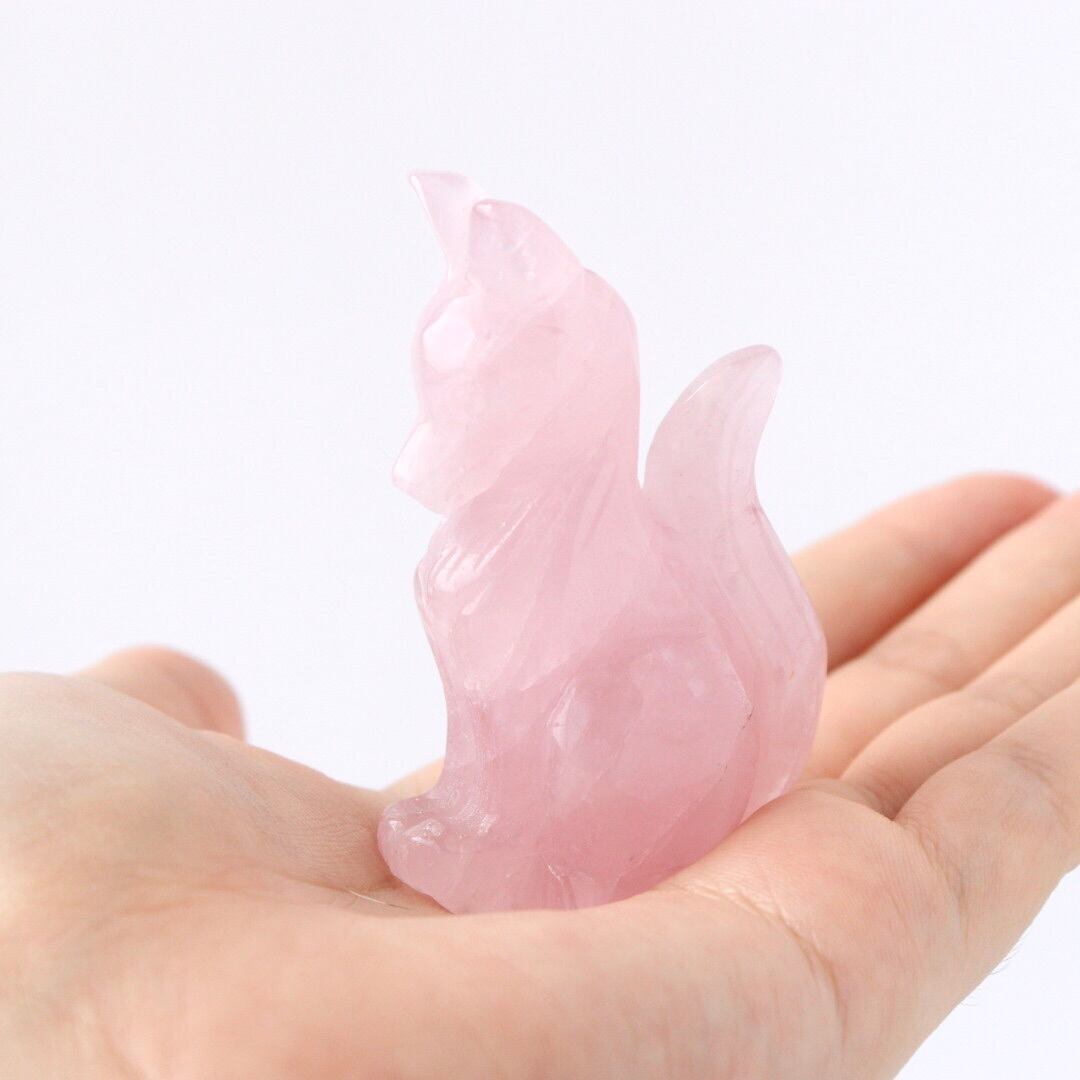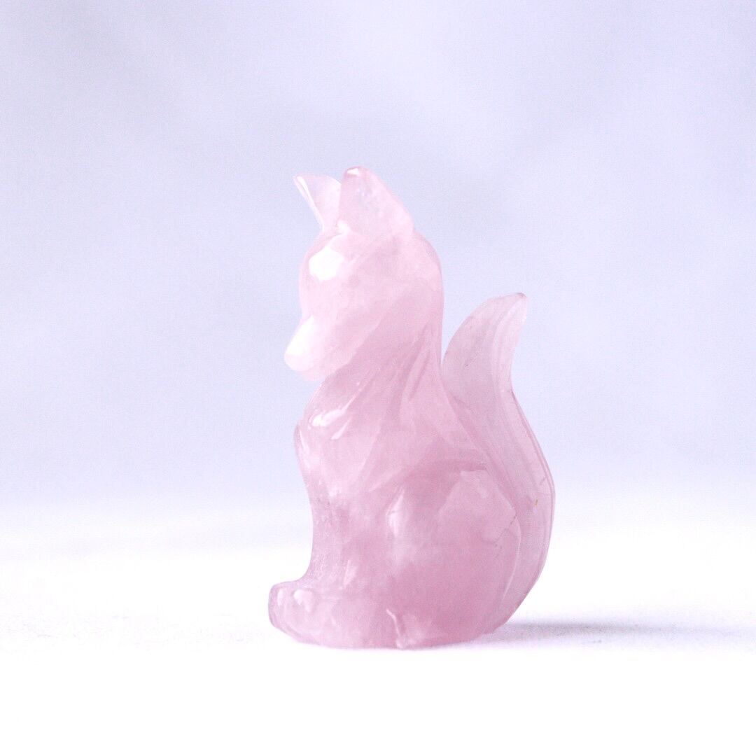 こちらは、透明のあるローズクォーツが神秘的なきつねの姿にカービングされています。