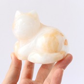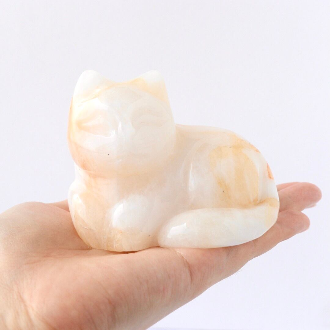 ゆったりと座り、穏やかな眼差しでこちらを見つめる、イエローヘマタイトインクォーツのねこ。