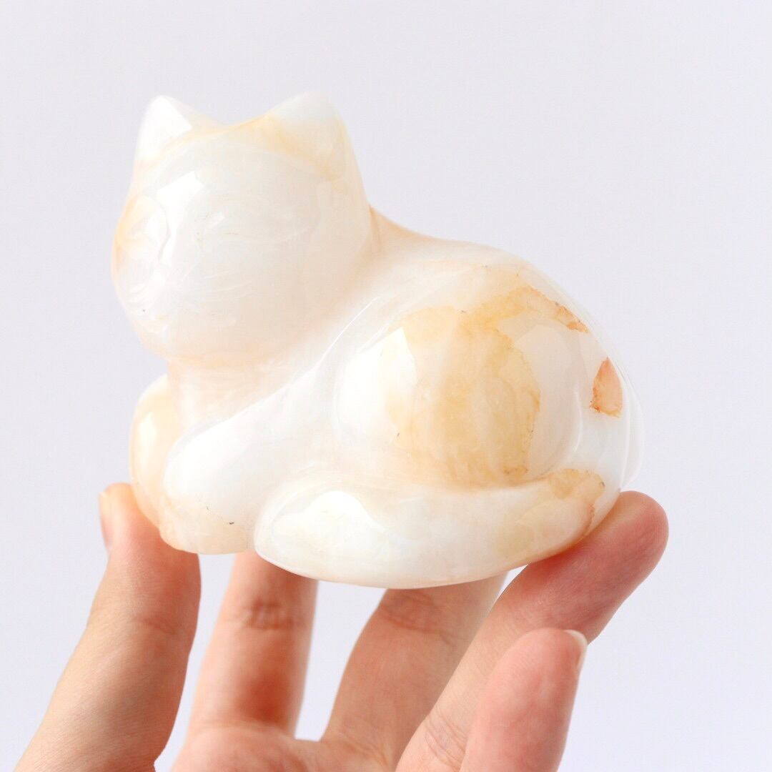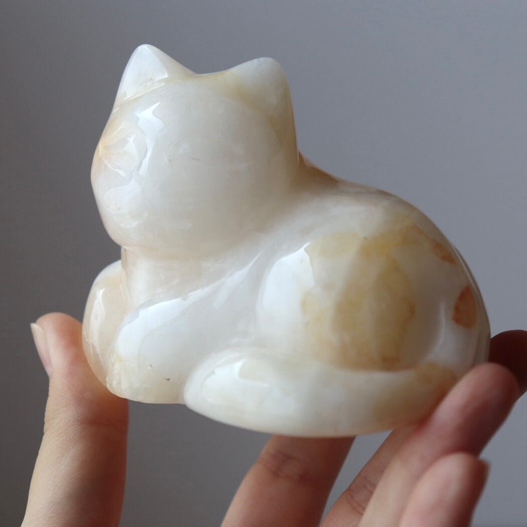 つるりと磨かれた滑らかな質感と、穏やかな猫の姿がぴったりと重なります。