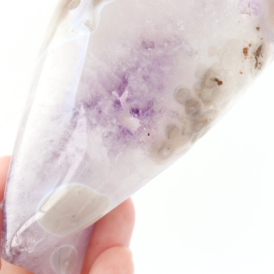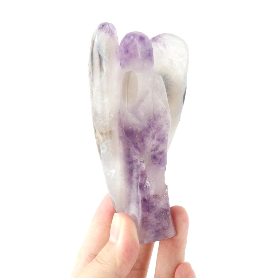 柔らかな紫色のアメジストとアゲートの模様が美しく共生した、アメジストアゲートの天使。