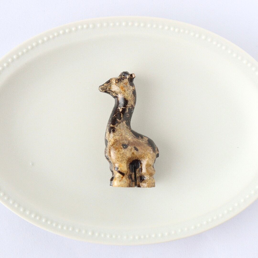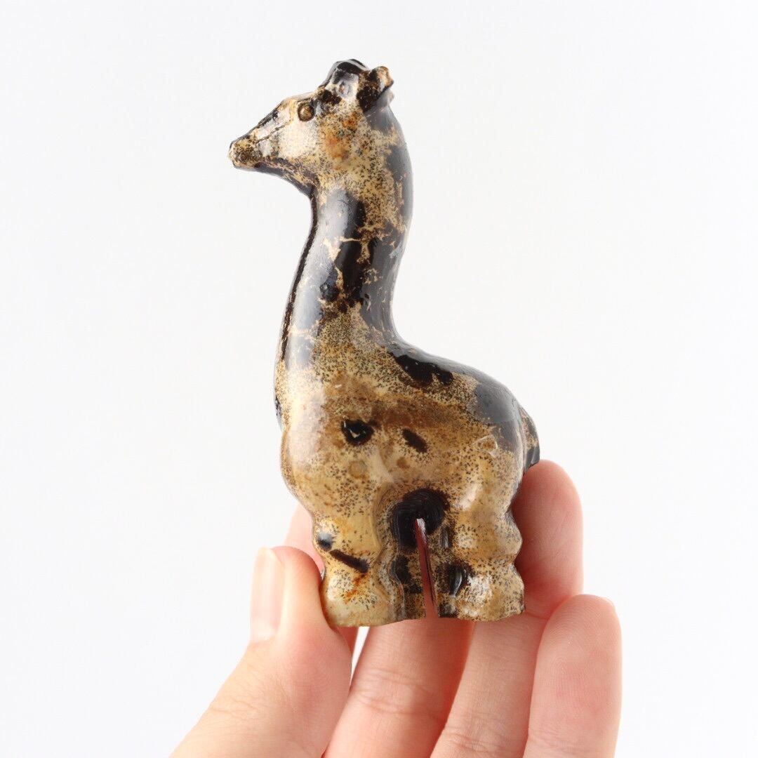 ナチュラルブラウンのベースにブラックの模様が広がる、ピクチャージャスパーのキリン。