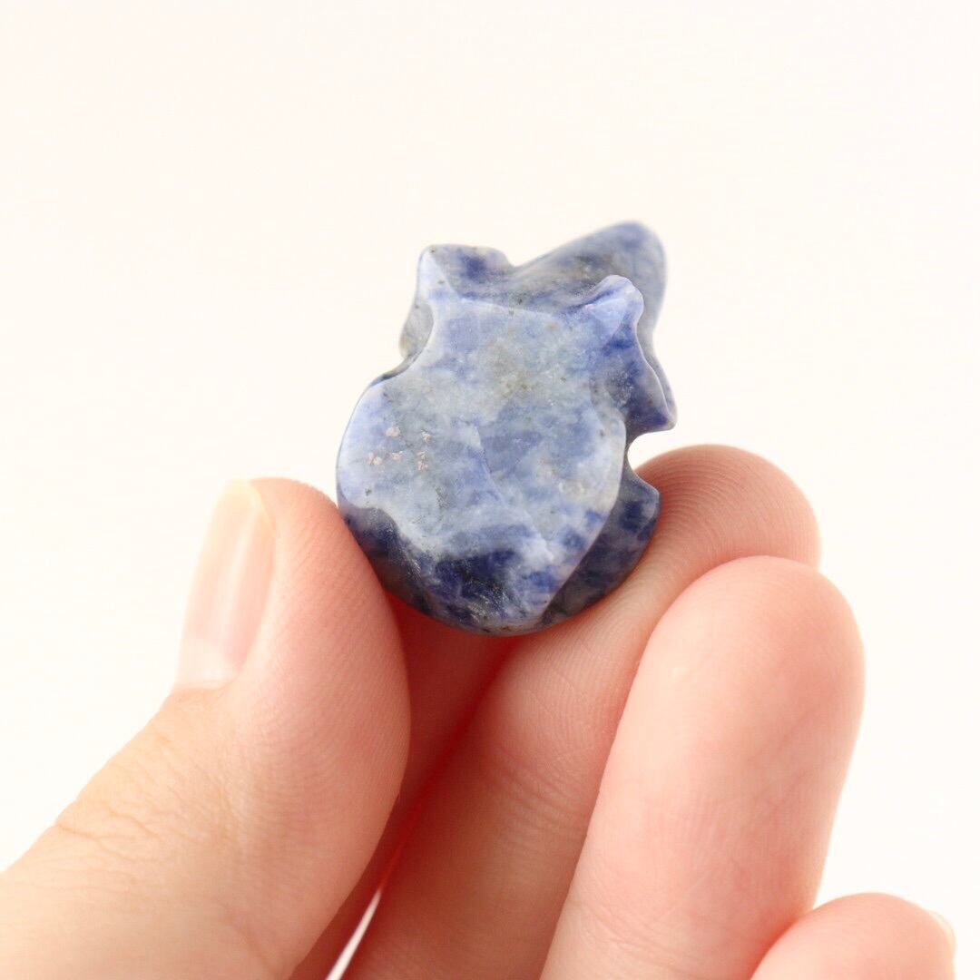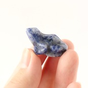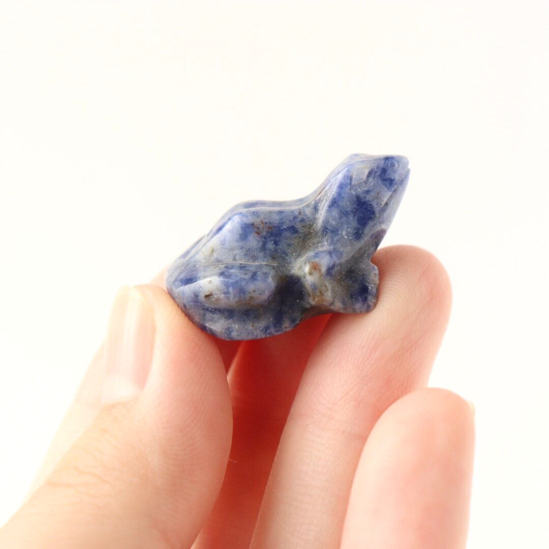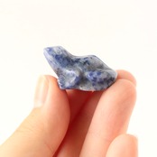 こちらは、マーブル模様に発色したソーダライトのカエル。