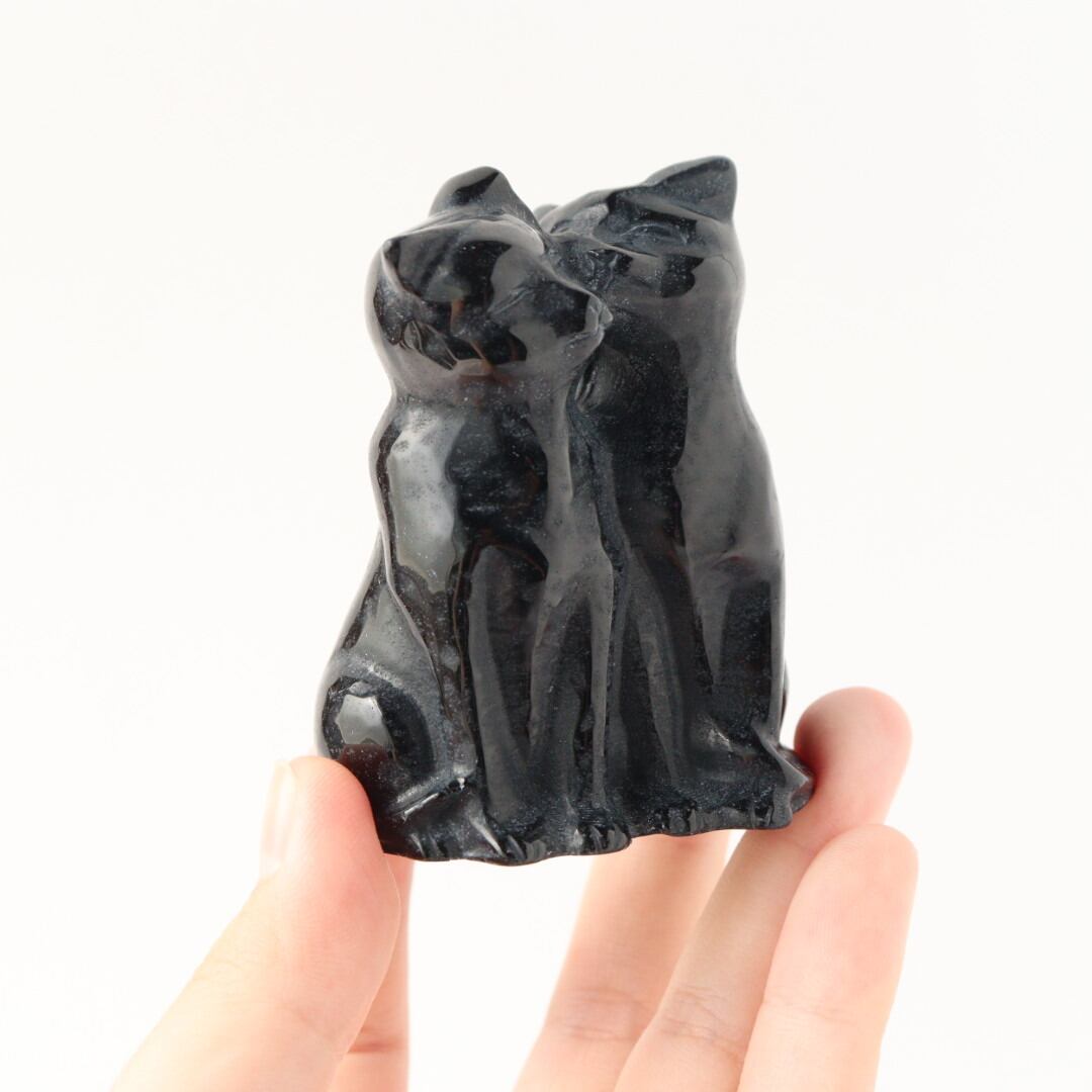 二匹のねこ顔を寄せ合う、ブラックオブシディアンの双子ねこ。