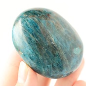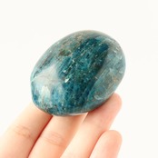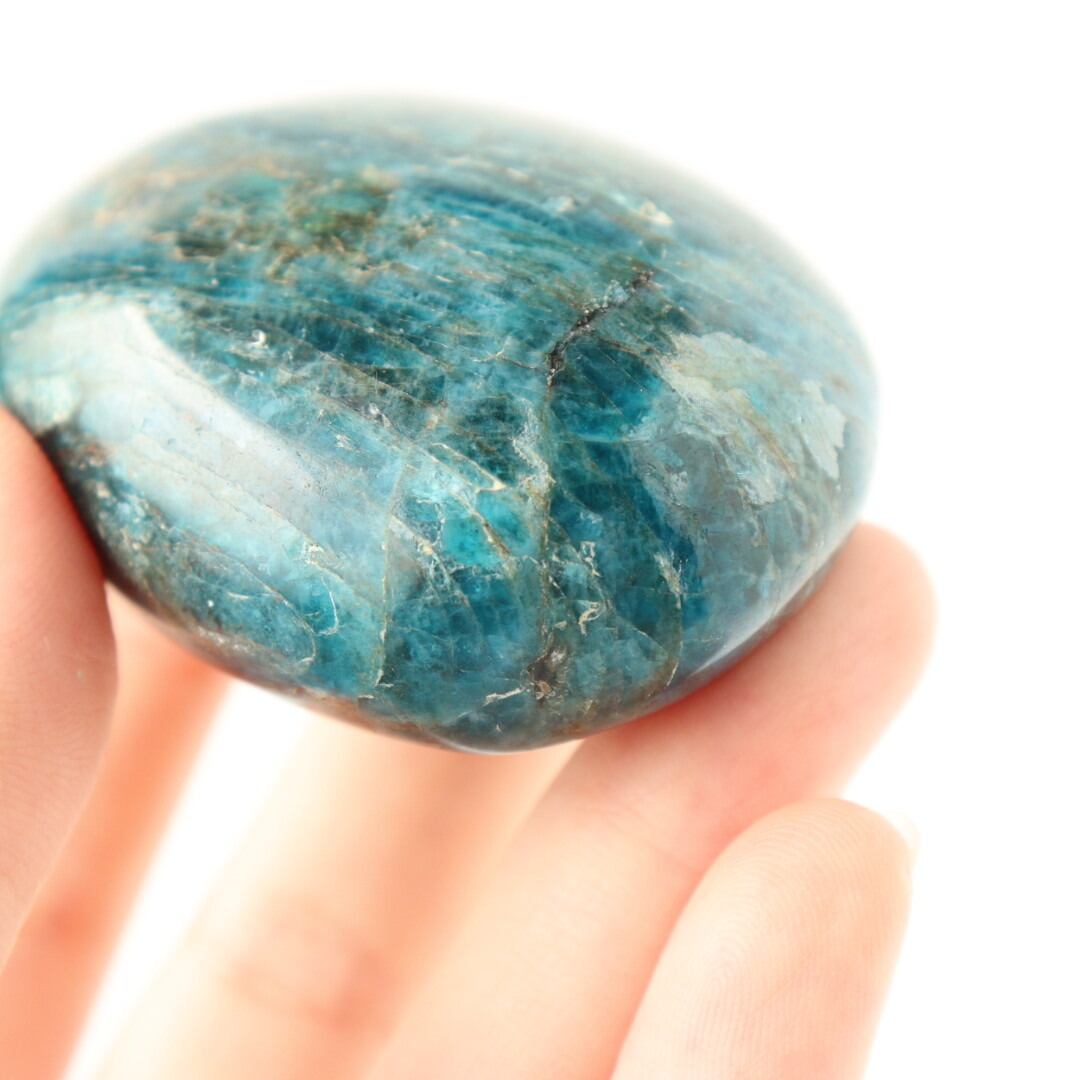 さざなみのようなホワイトのラインと深く澄んだ海のようなブルーカラーをもつ、ブルーアパタイトの握り石。