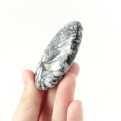 握り石として磨かれることで模様の流れや濃淡がより際立ち、アートピースのような趣を感じさせます。