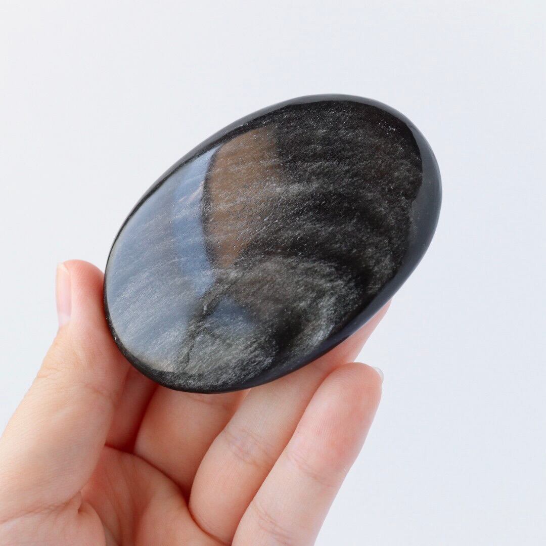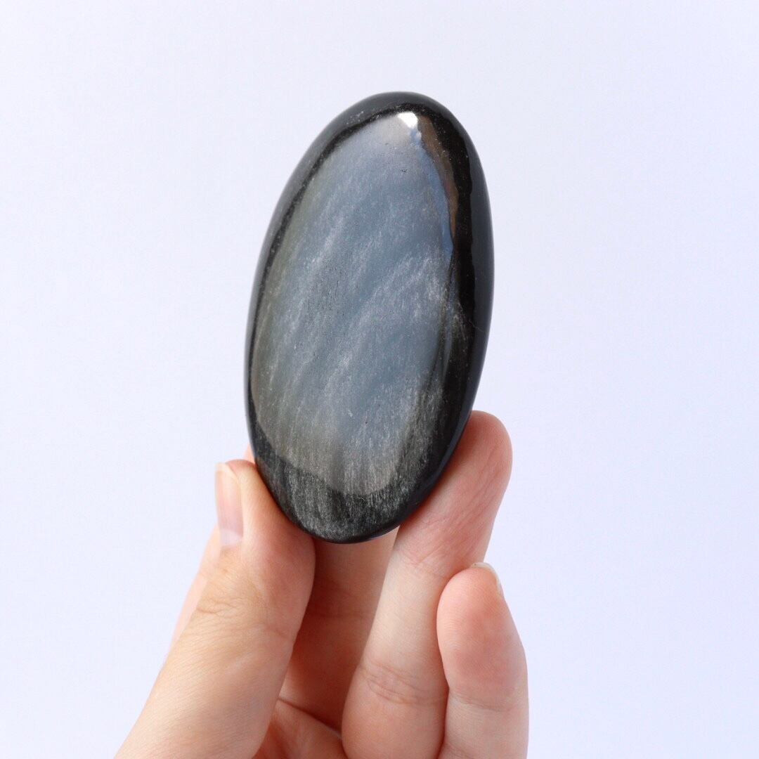 銀河のきらめきを閉じ込めたような、シルバーオブシディアンの握り石。
