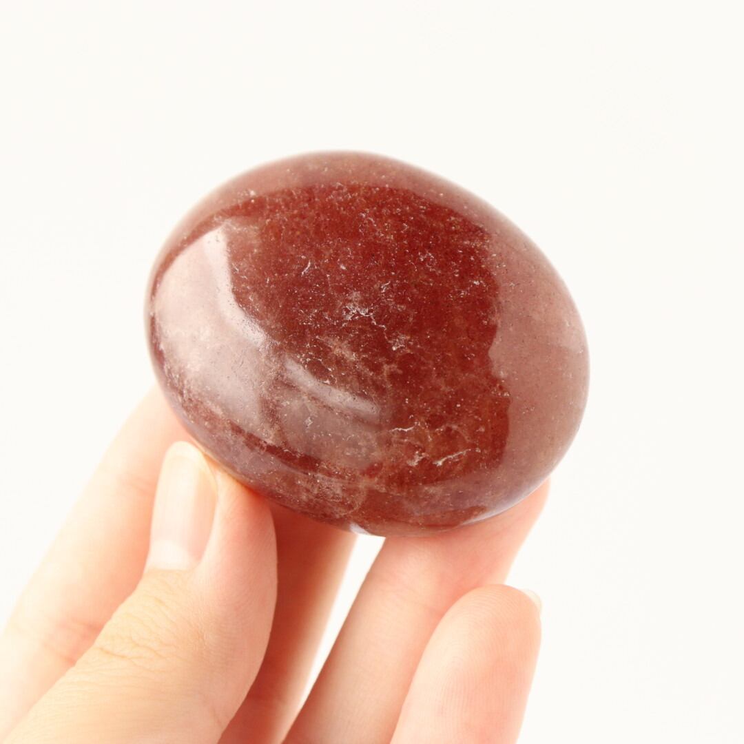 苺ジャムのような落ち着いたピンクカラーの、アフリカンストロベリークォーツの握り石。