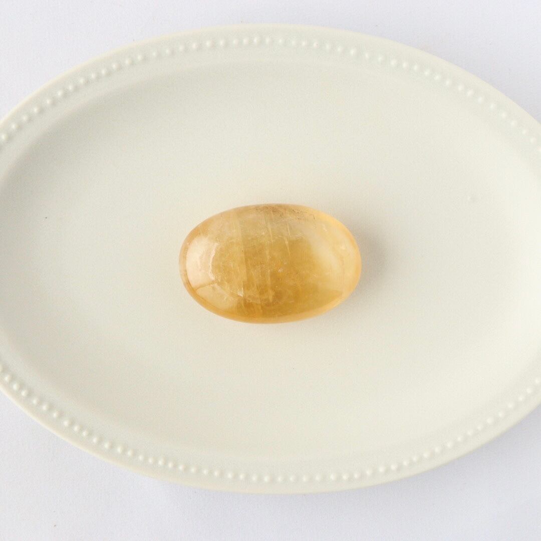 こちらは、まるで光そのものを結晶化させたようなハニーカルサイトの握り石。