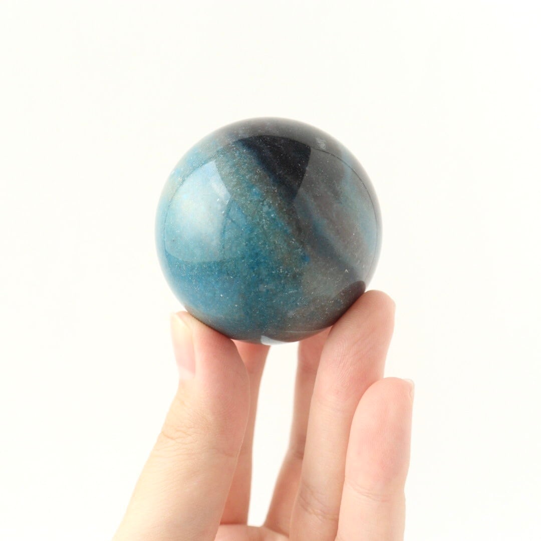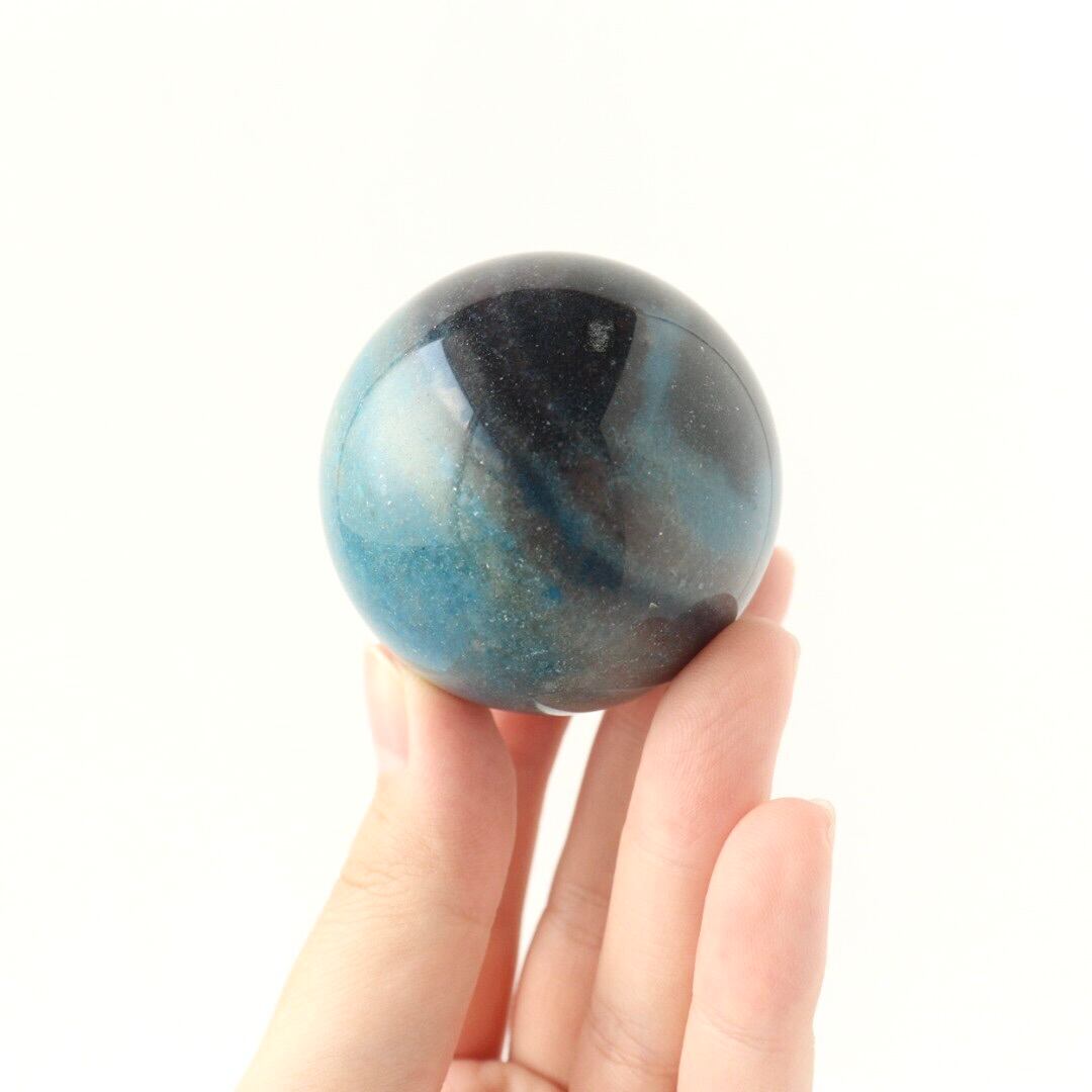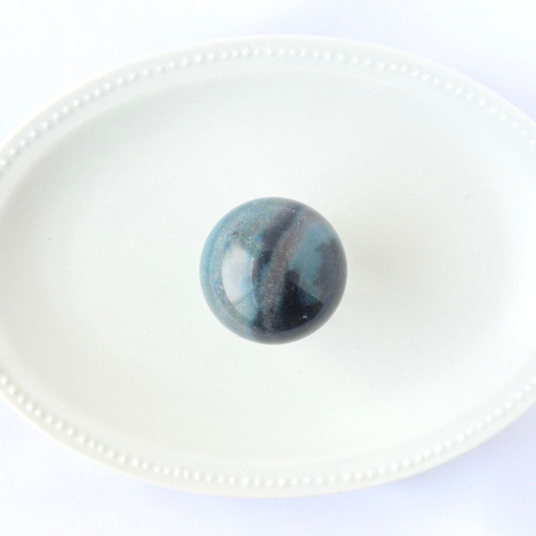 こちらは、ディープグレーとブルーが柔らかく溶け合う球体フォルムのトロレアイト。