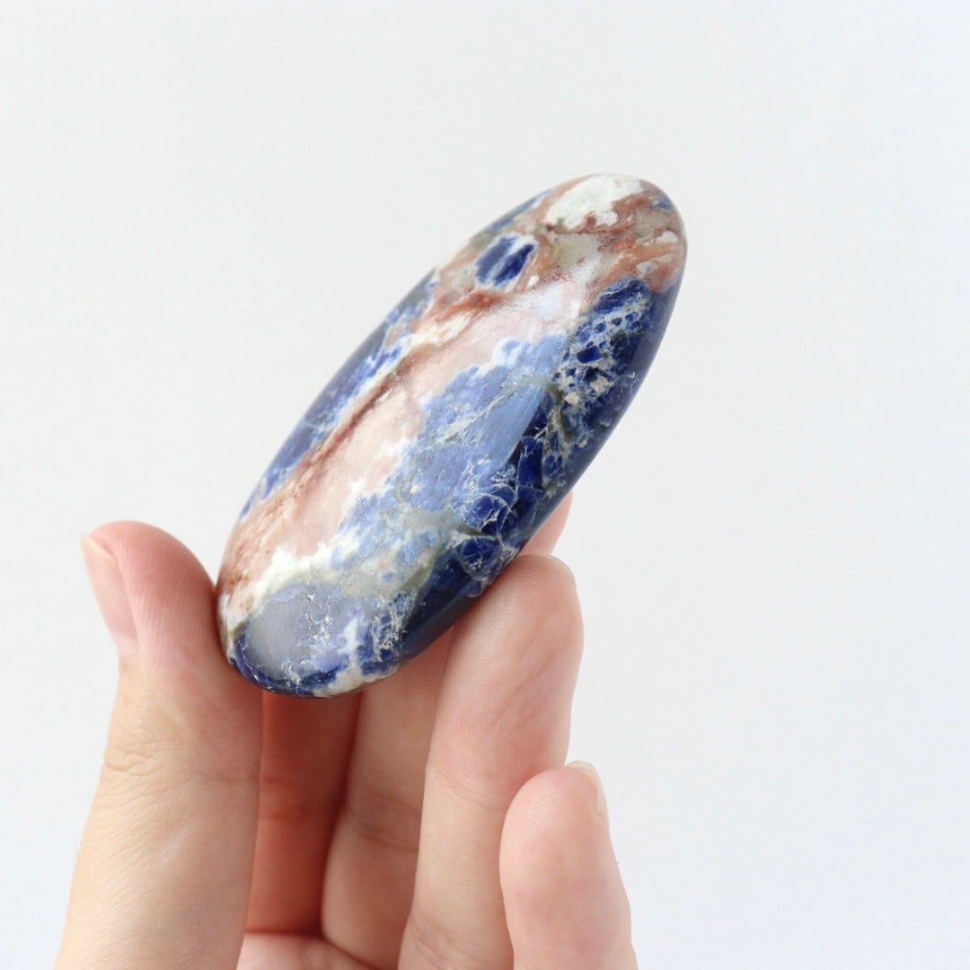 鮮やかでハッとさせられるような美しさのソーダライトを握り石でご堪能ください。