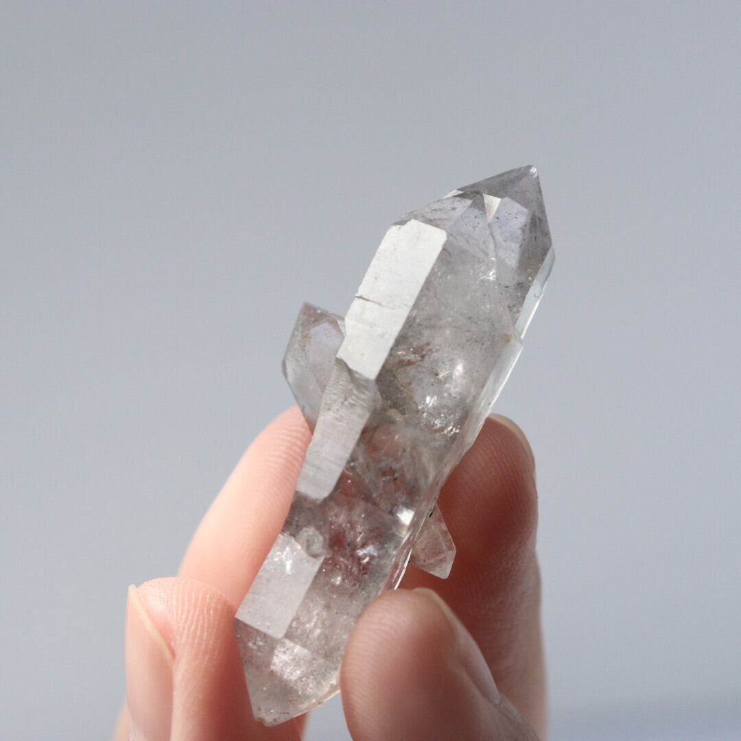 ほんのりとグレーに色づきながらも、美しい透明度と整った造形をもつひとつです。