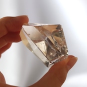 透明度の高い結晶が角のある自由な形に磨き上げられた、クリアクォーツのフリーフォーム。