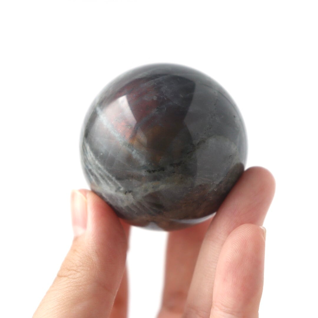 こちらは、濃いグレーをもつラブラドライトのスフィア。