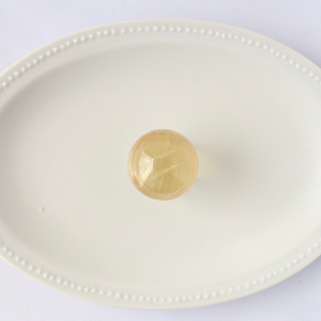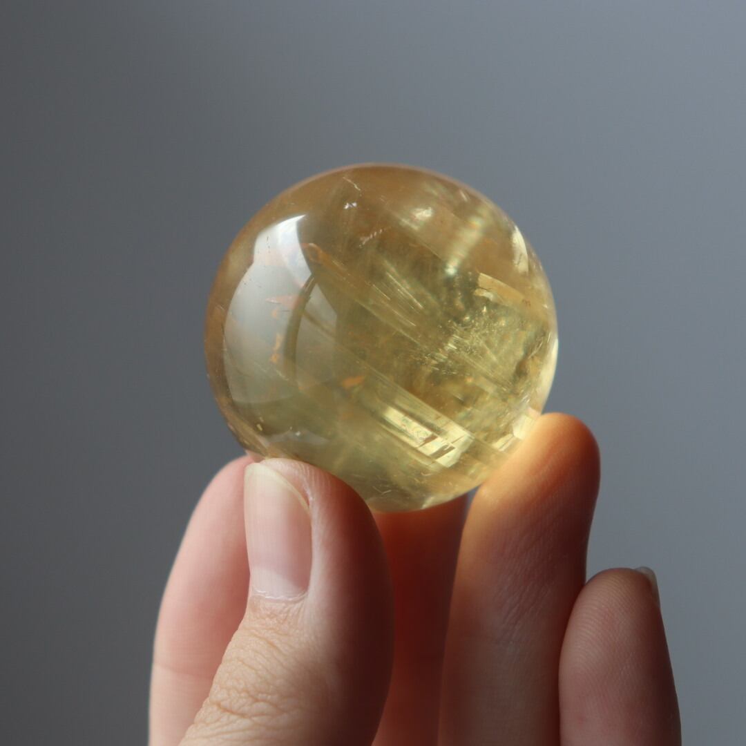 カルサイトは衝撃に弱く、硬度も低いため、スフィア状に加工するのが難しい鉱物です。