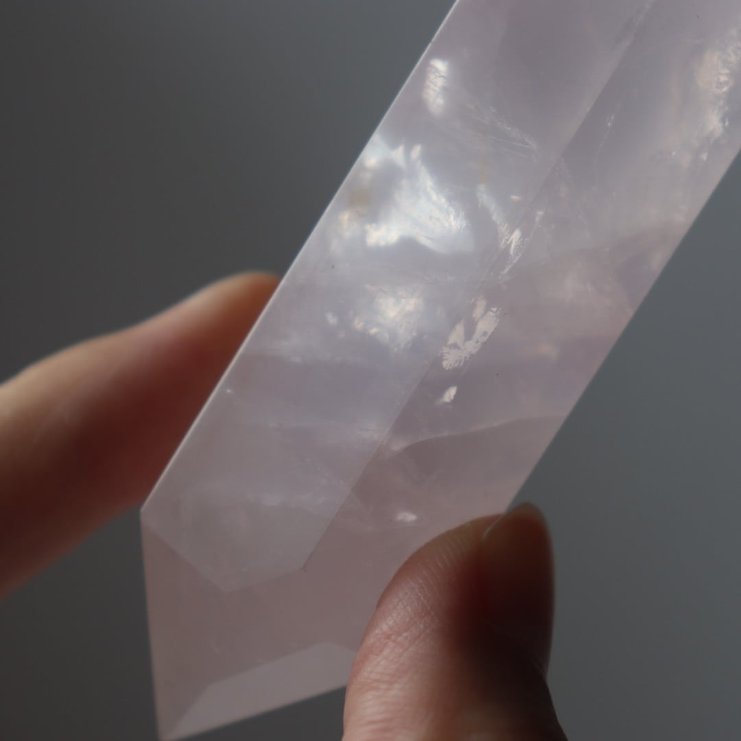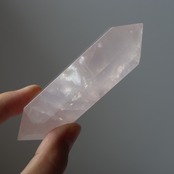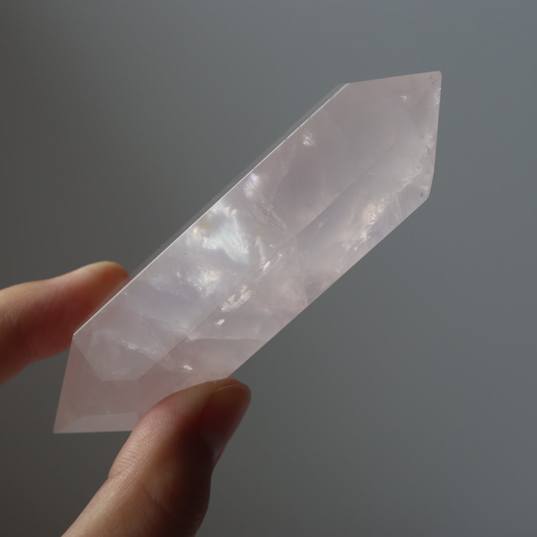 こちらは、両端が尖ったダブルポイントの形に磨かれたローズクォーツ。