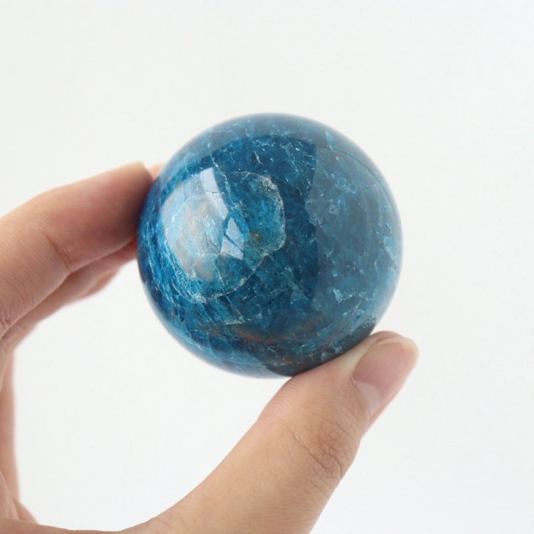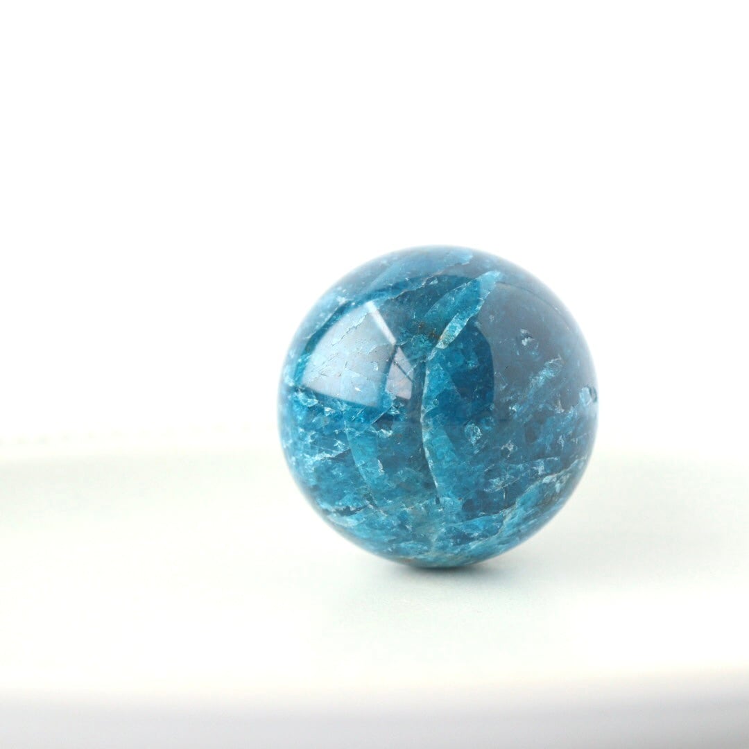 こちらのスフィアは、アパタイトの中でも特に深みのあるブルーが際立つハイグレードピース。