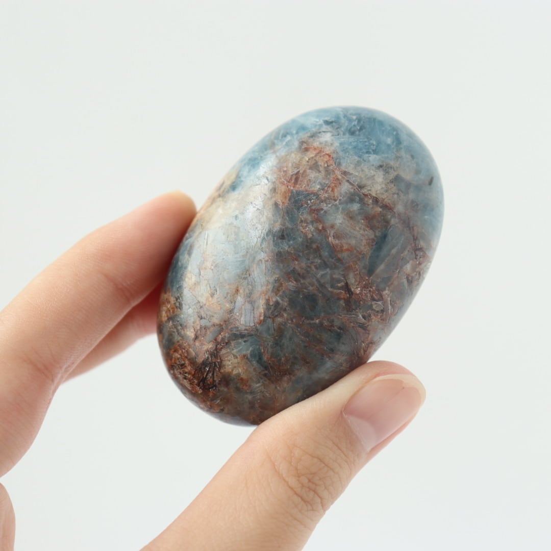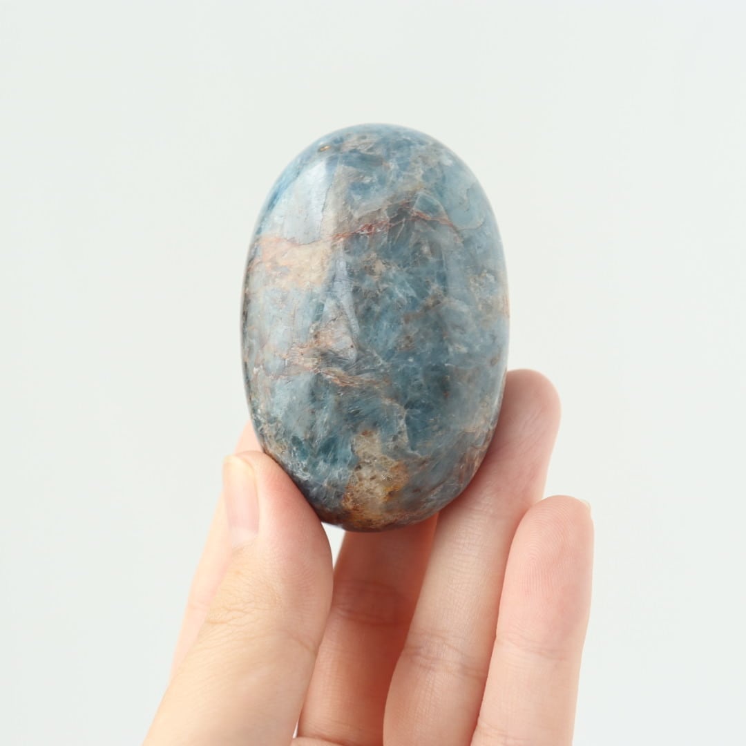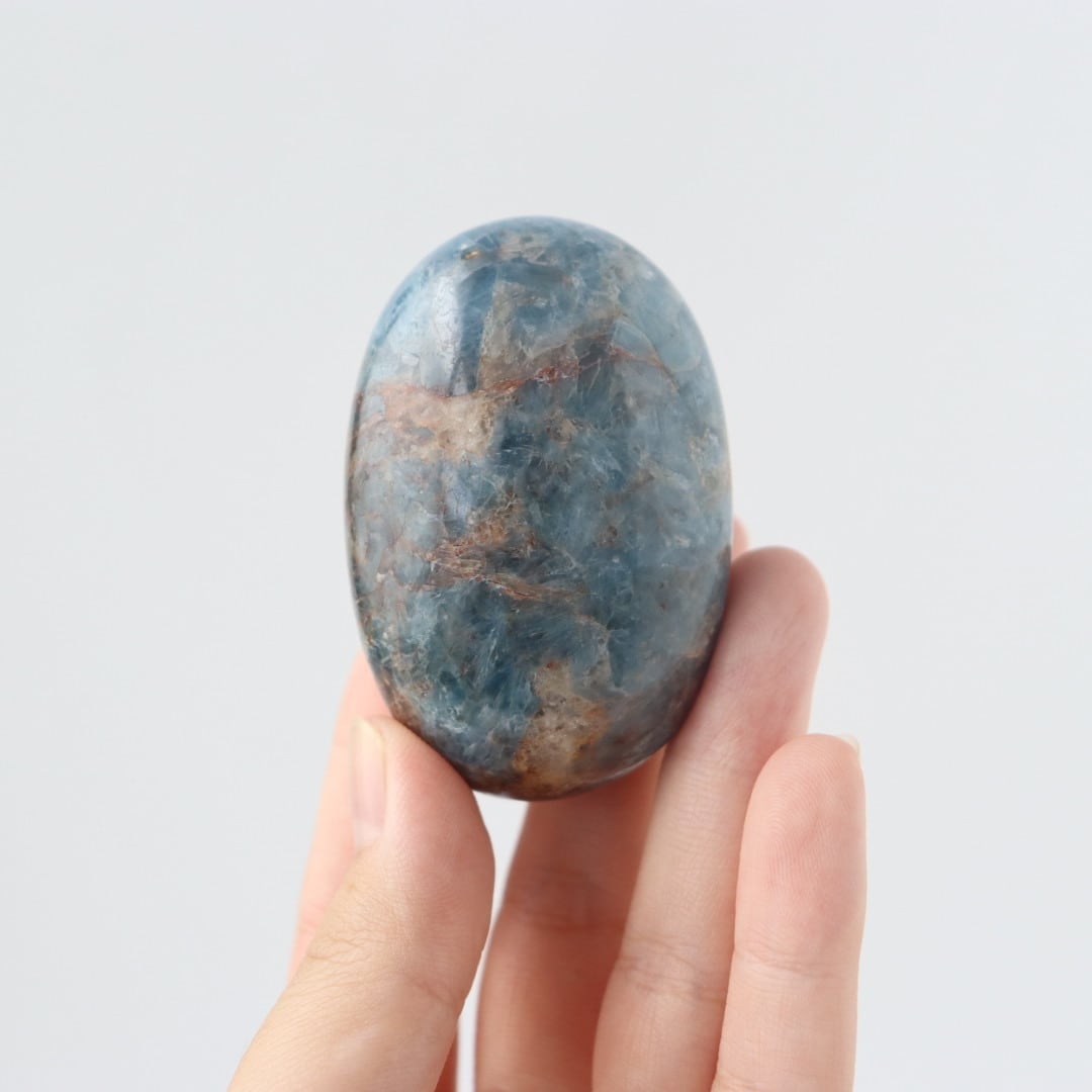 グレイッシュブルーの落ち着いた色味が美しい、カイヤナイトの握り石。