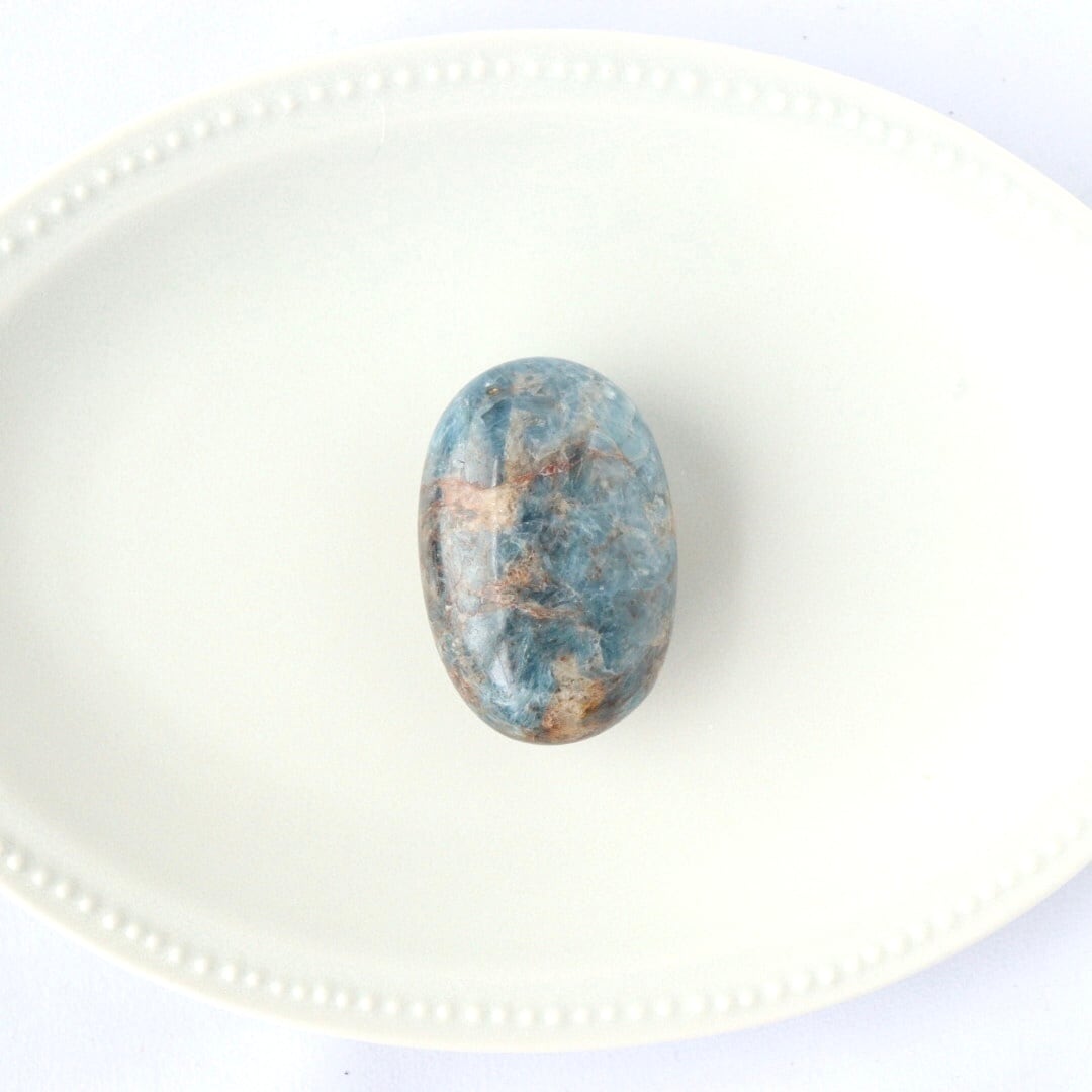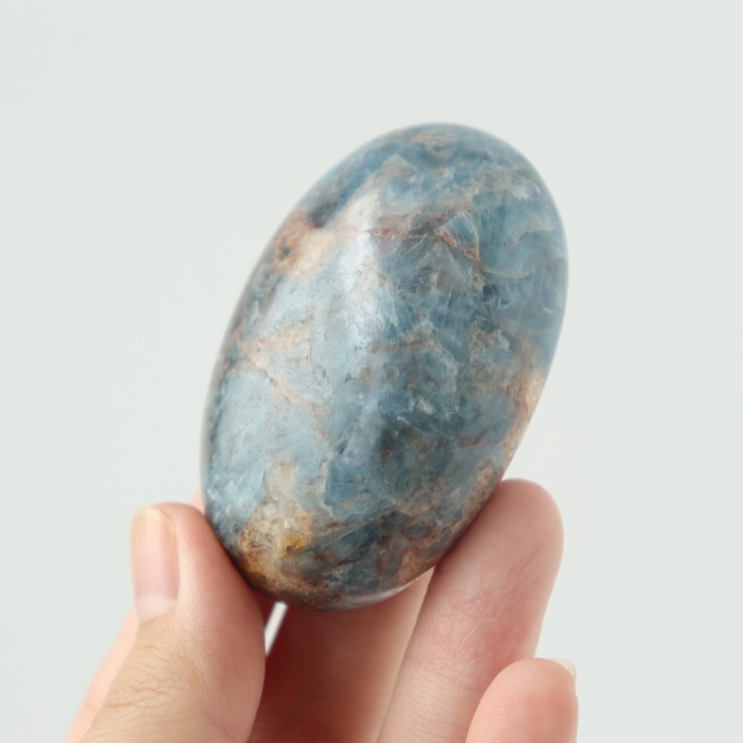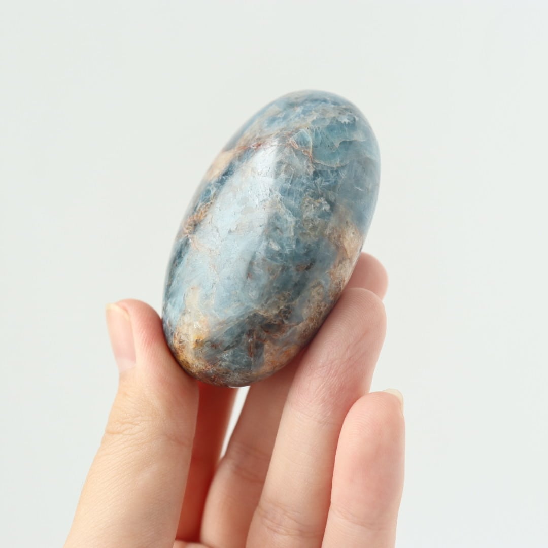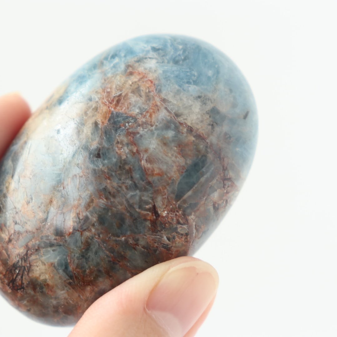 グレイッシュブルーの落ち着いた色味が美しい、カイヤナイトの握り石。