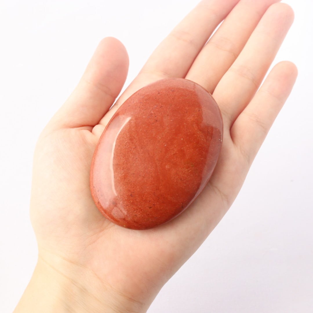 鮮やかでぎゅっと凝縮したような、レッドカラーのレッドジャスパーの握り石。