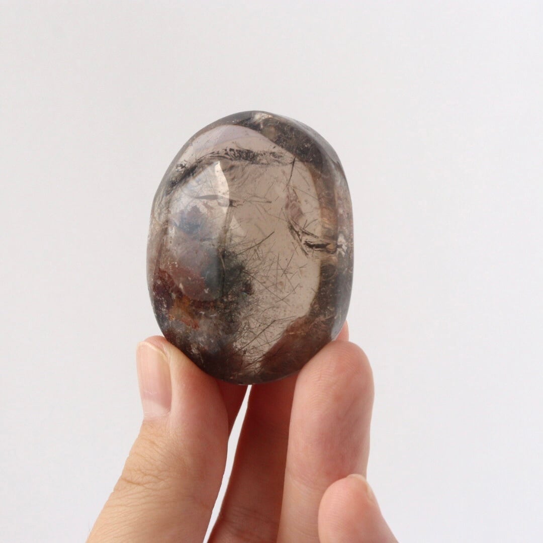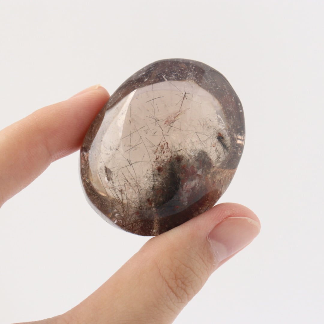 [レア]スモーキーガーデンクォーツの握り石[ブラックルチルイン]