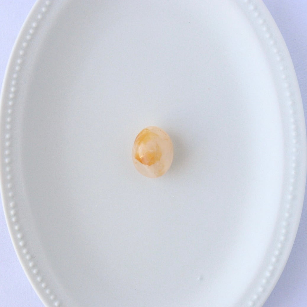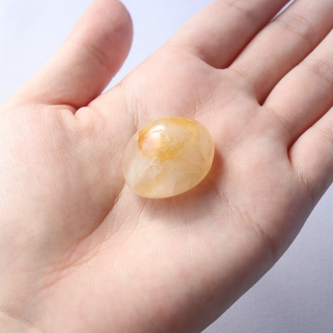 透明感のあるクォーツにイエローヘマタイトが入り込んだイエローヘマタイトインクォーツのタンブル。