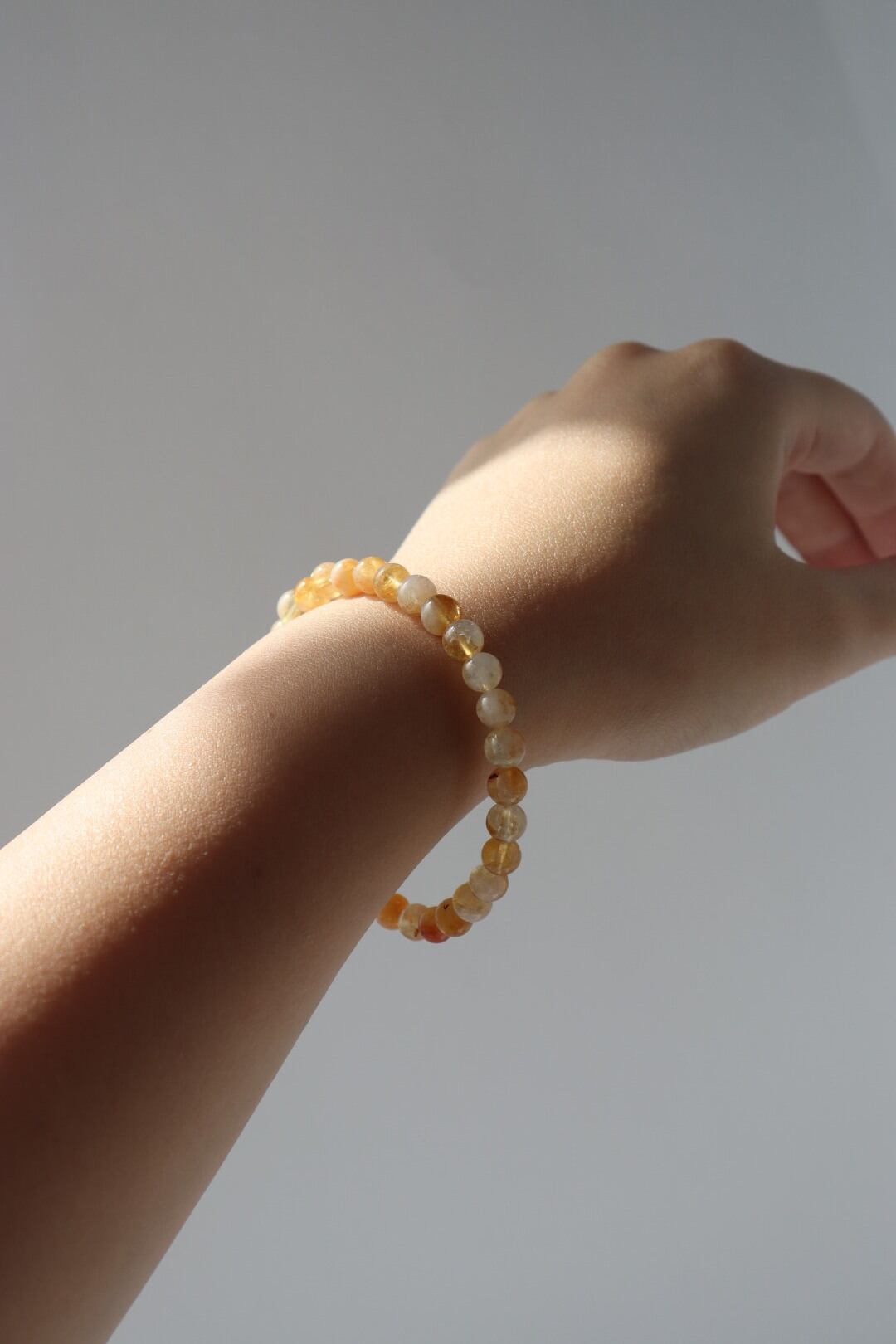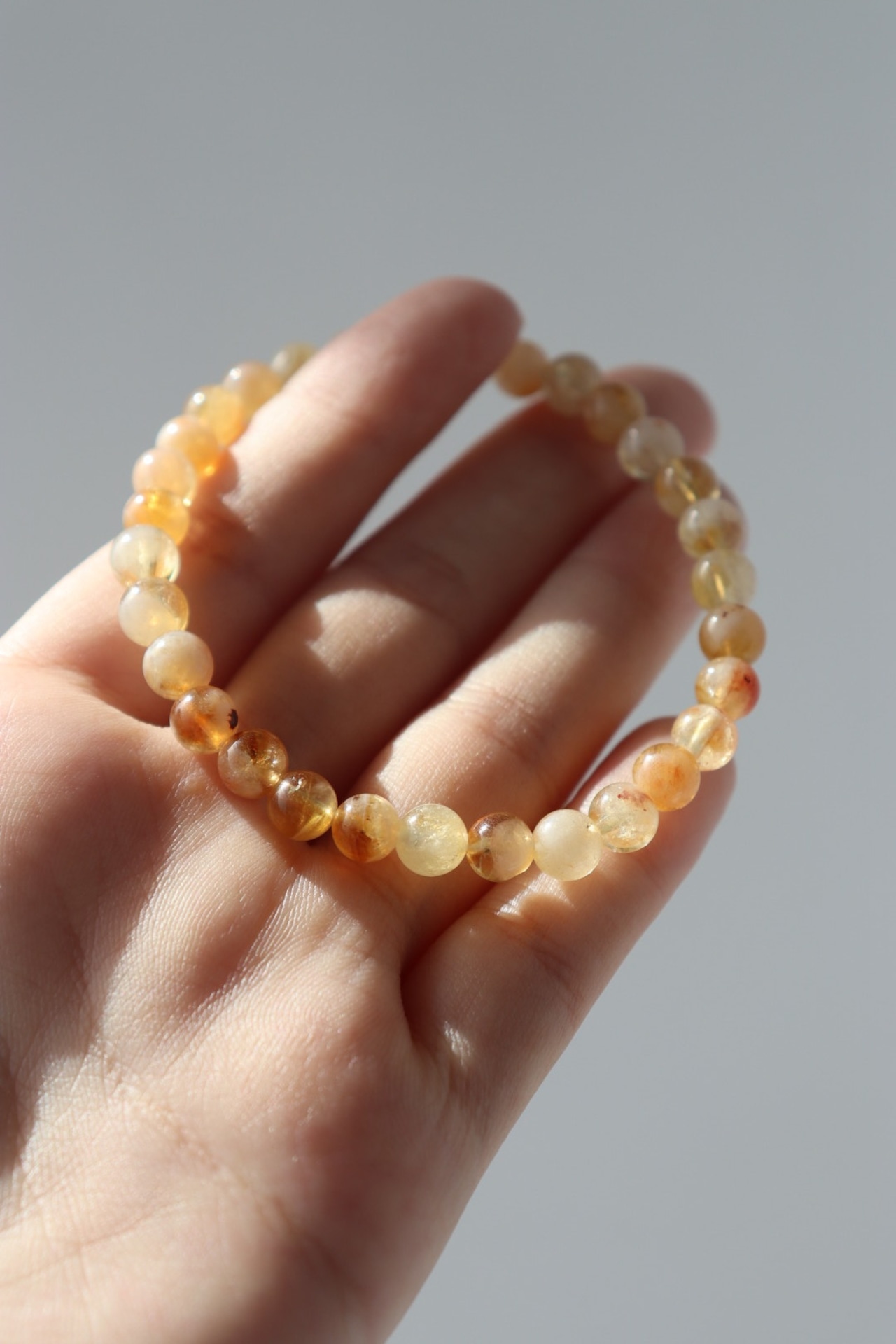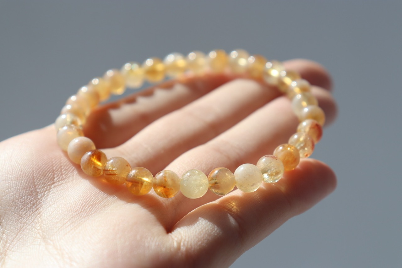 太陽の光をそのまま閉じ込めたような、明るく温かな色合いが魅力のシトリンのブレスレット。