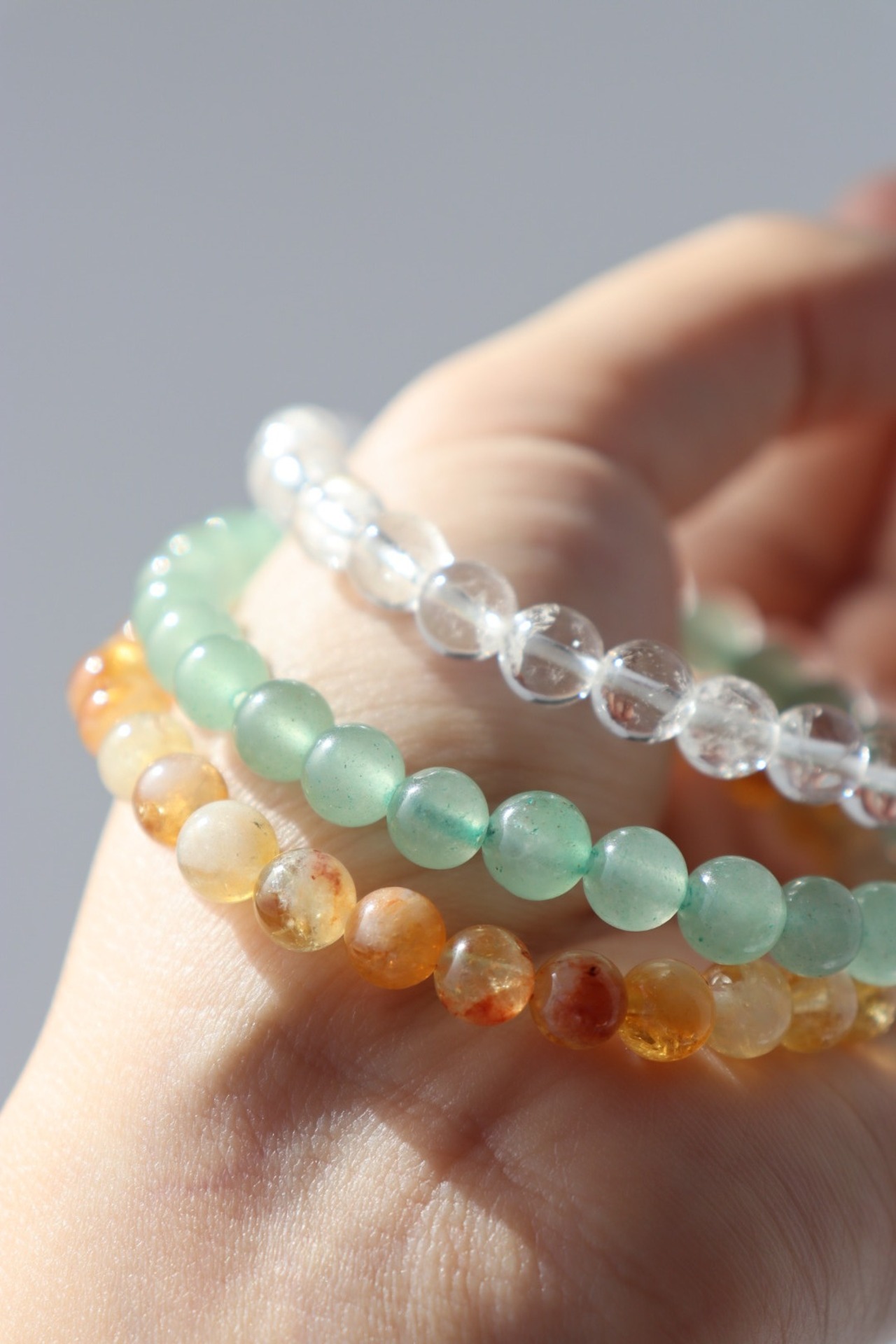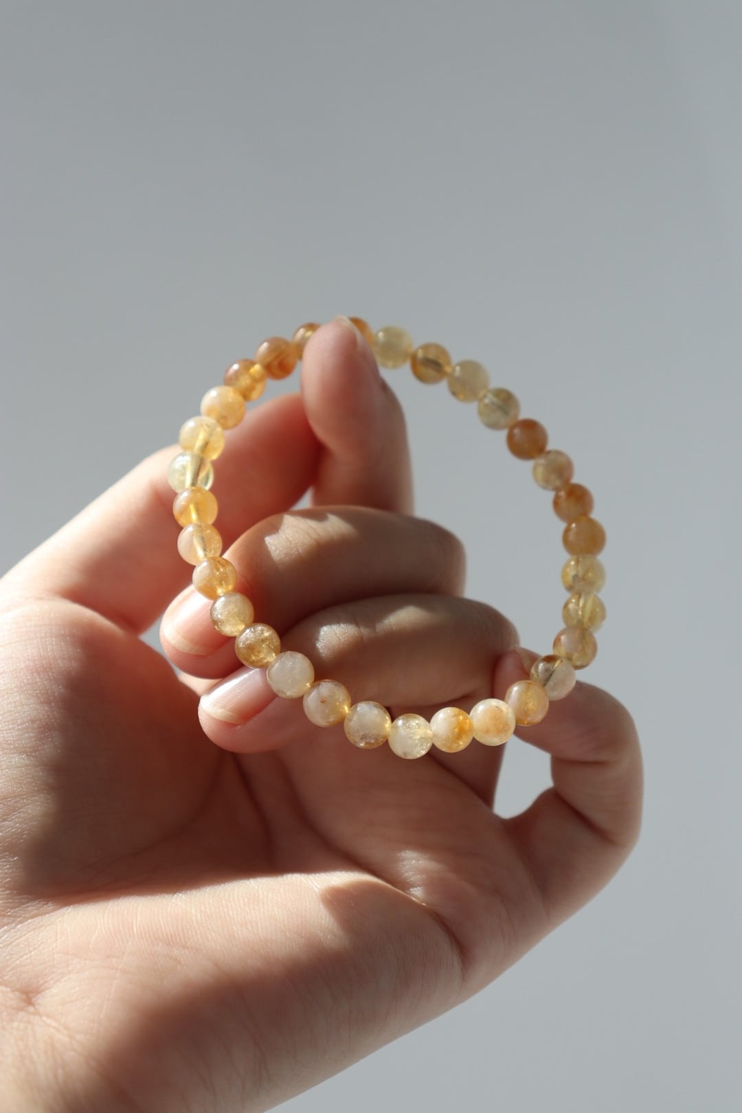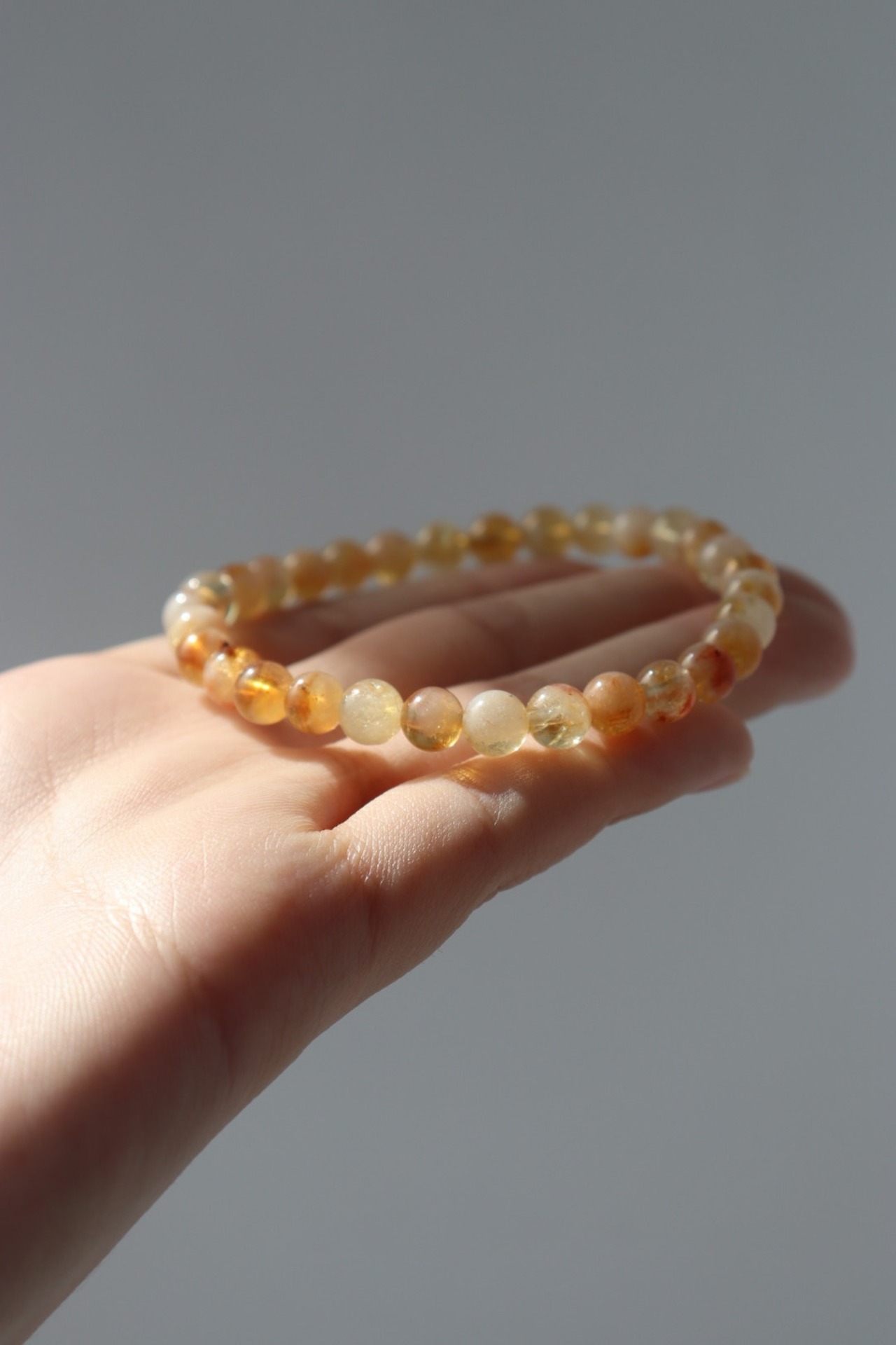 太陽の光をそのまま閉じ込めたような、明るく温かな色合いが魅力のシトリンのブレスレット。