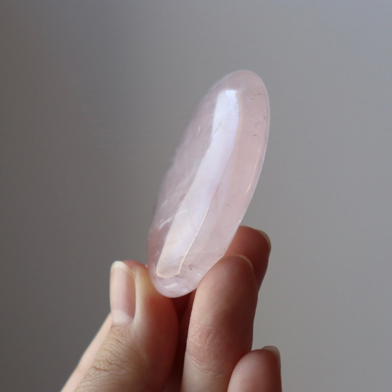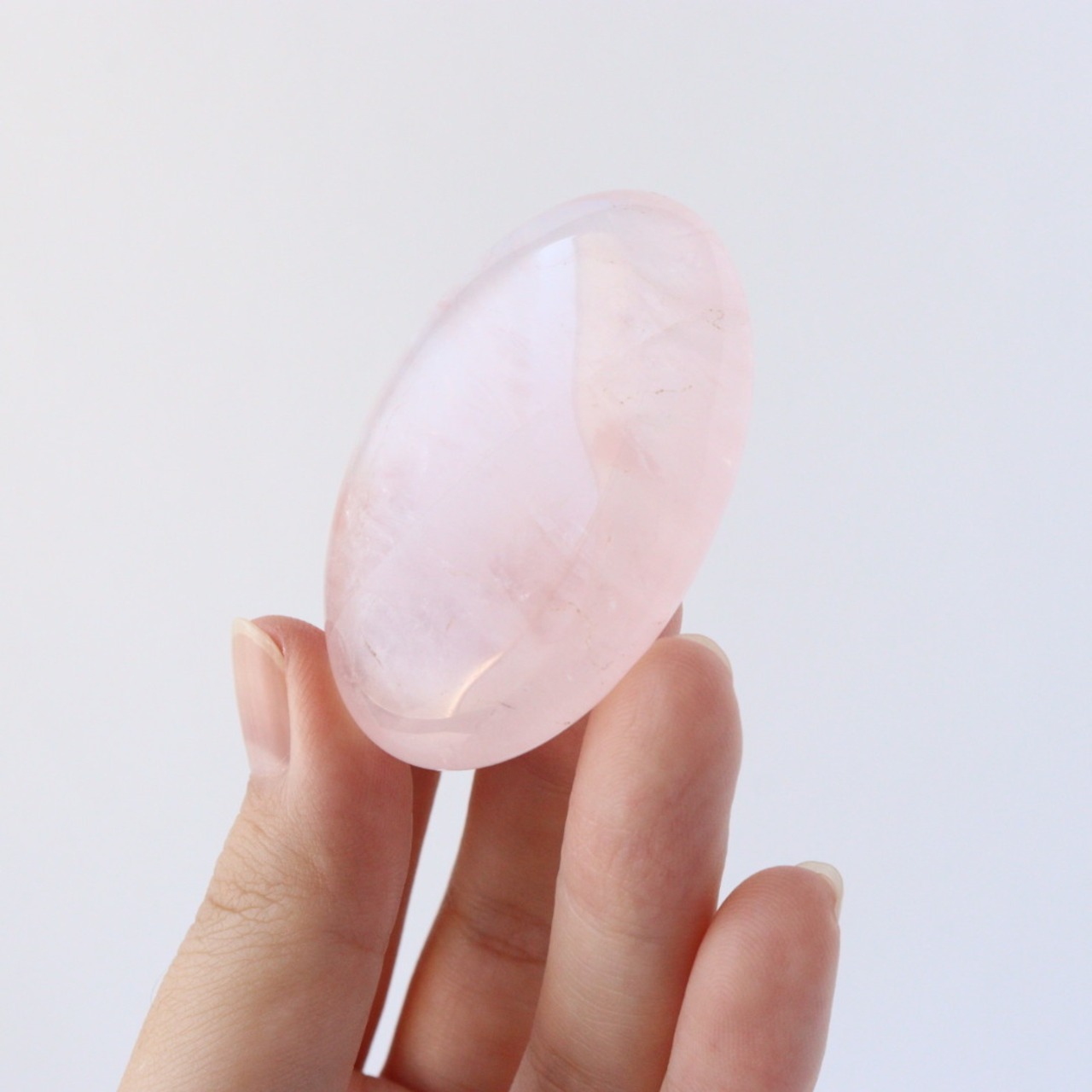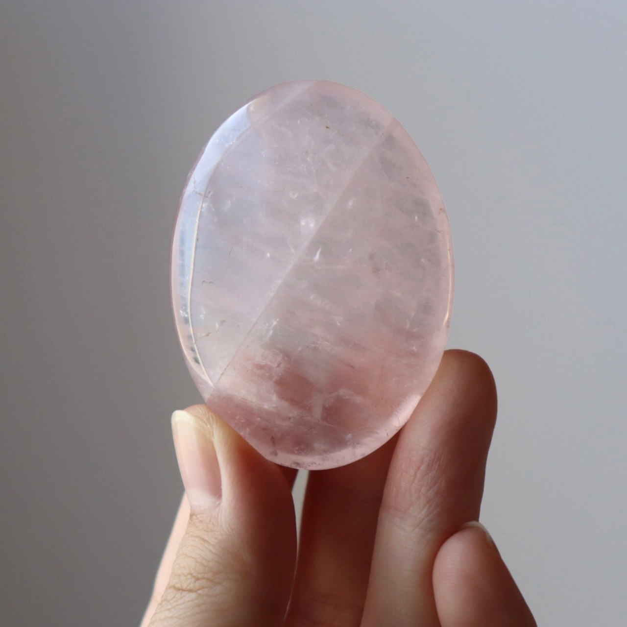 淡く繊細なピンクがやさしく透ける、ローズクォーツの握り石。