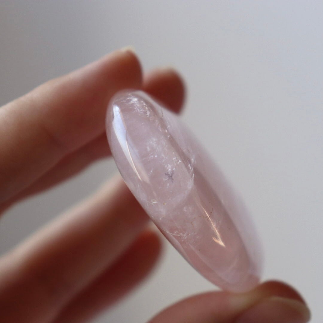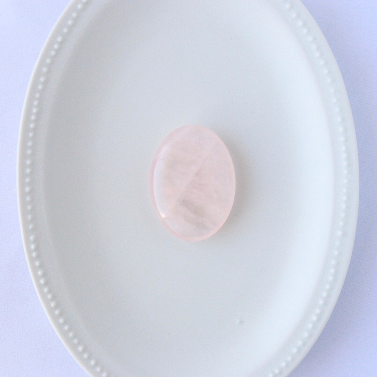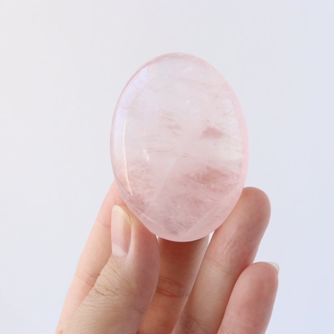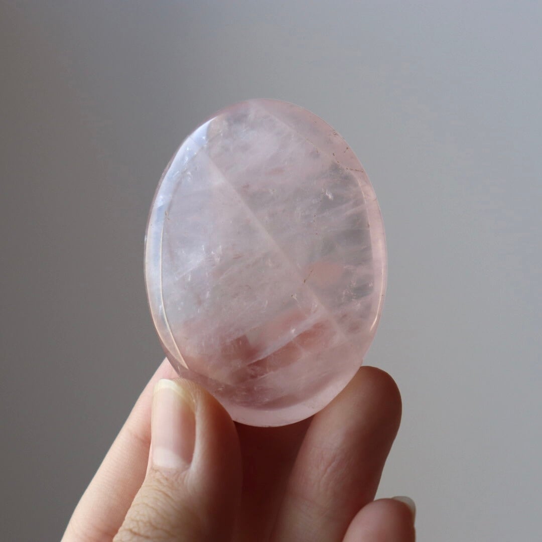 淡く繊細なピンクがやさしく透ける、ローズクォーツの握り石。